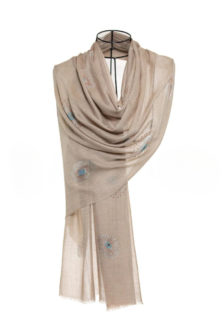 Eye Crystal Silk & Cashmere Shawls with Swarovski - Beige