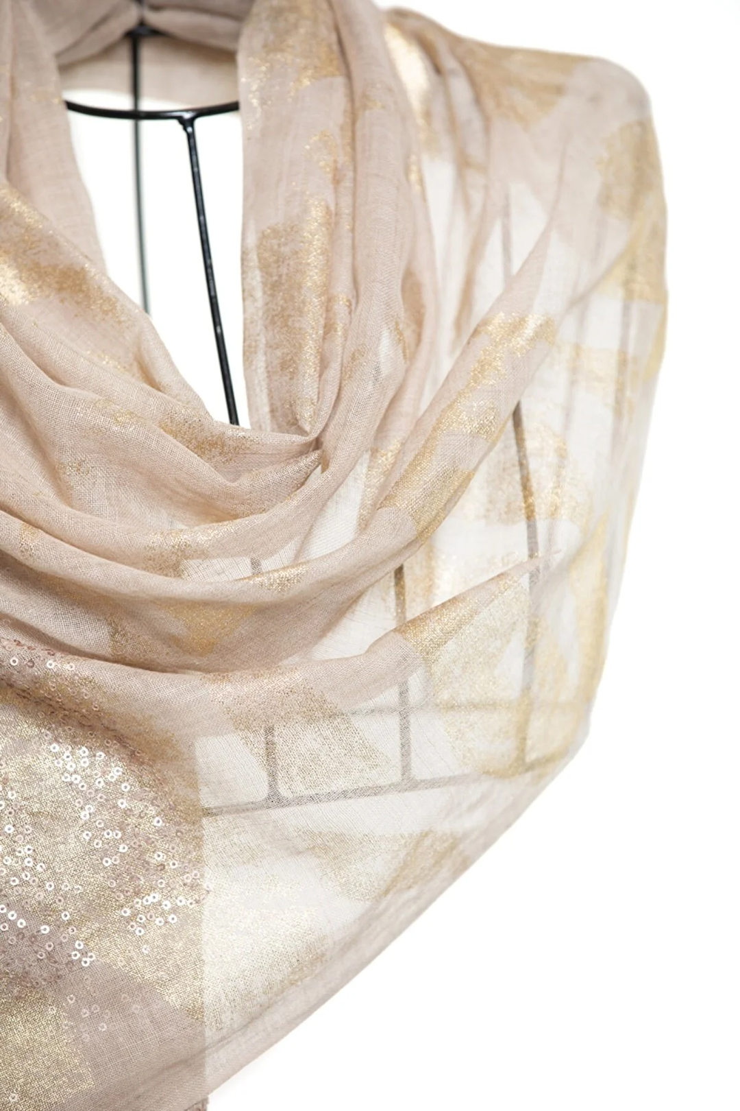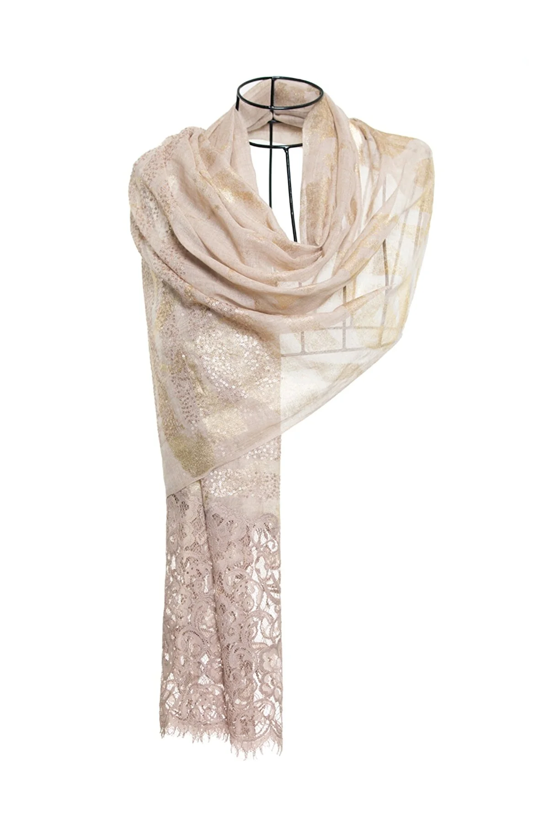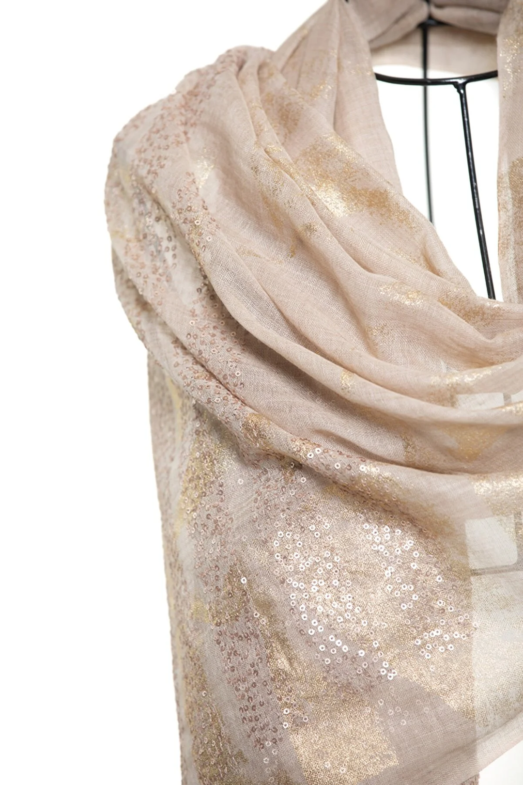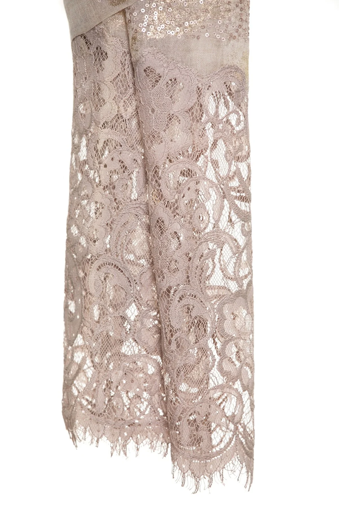 Silk & Cashmere Sequin Lace Lurex Stoles - Sepia
