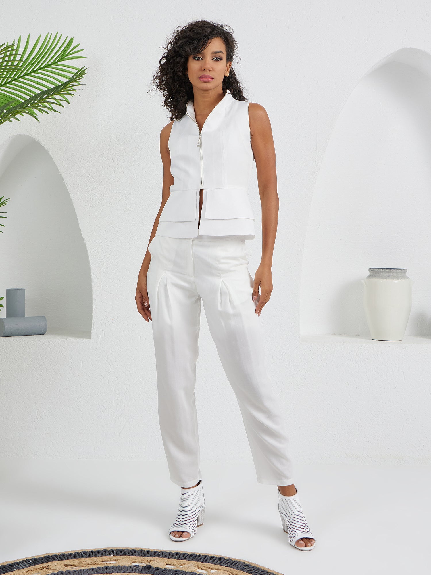 Construct Vest Suit & Pants Ensemble White