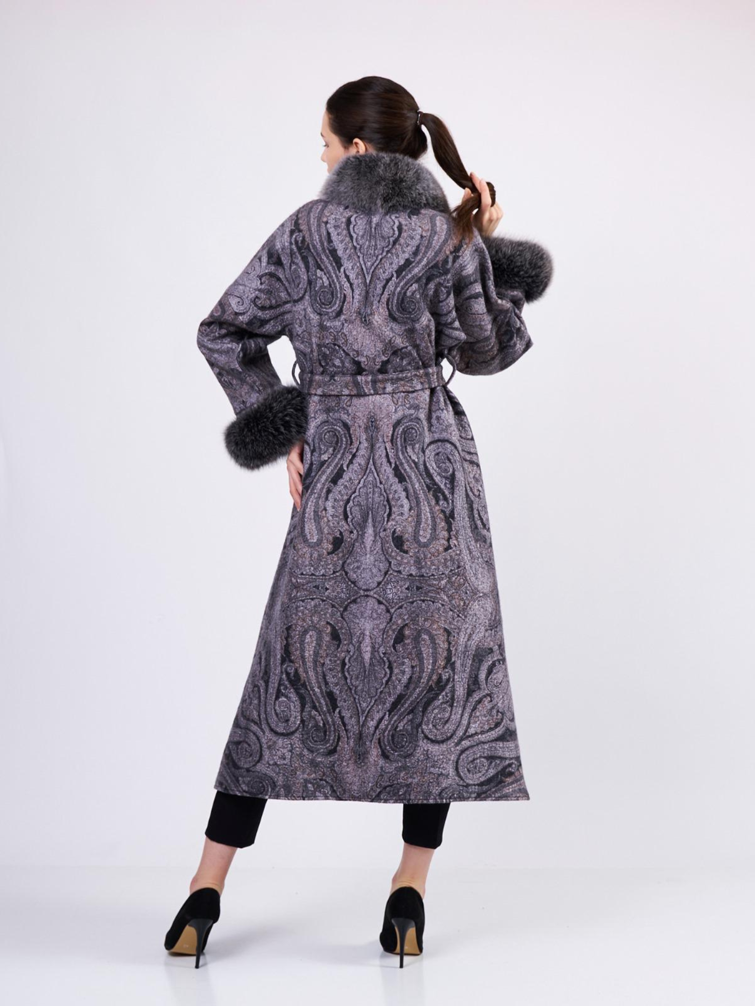 Merino Felt Fox Full Fur Coat - Endo Gray