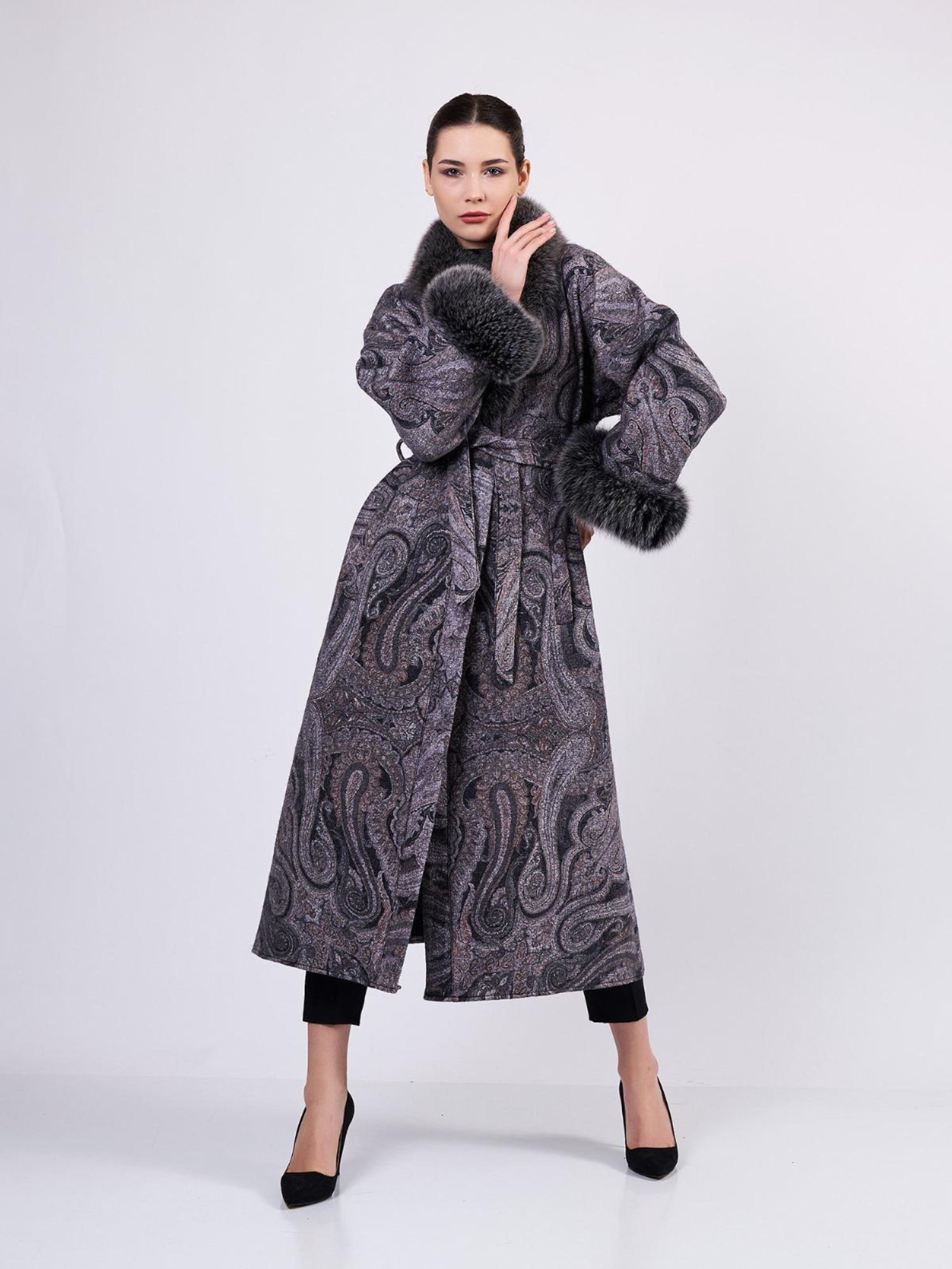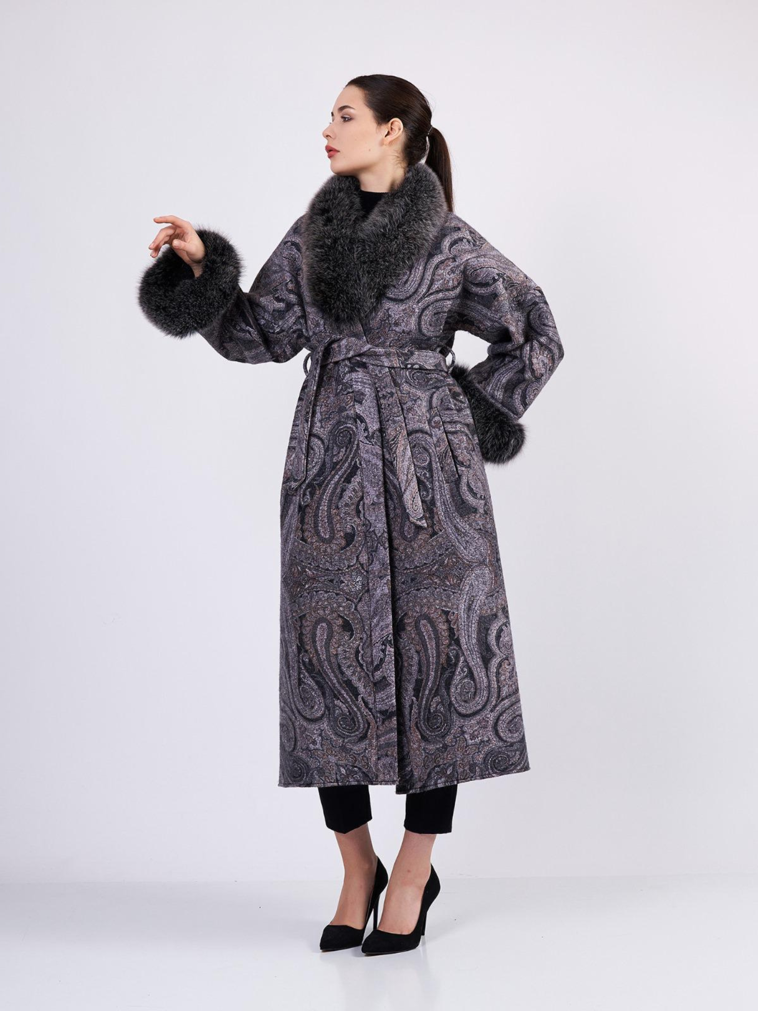 Merino Felt Fox Fur Coat - Endo Dark Gray