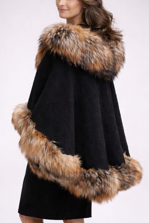 Merino Felt Fox Fur Hooded Poncho - Kadinsky Compositions