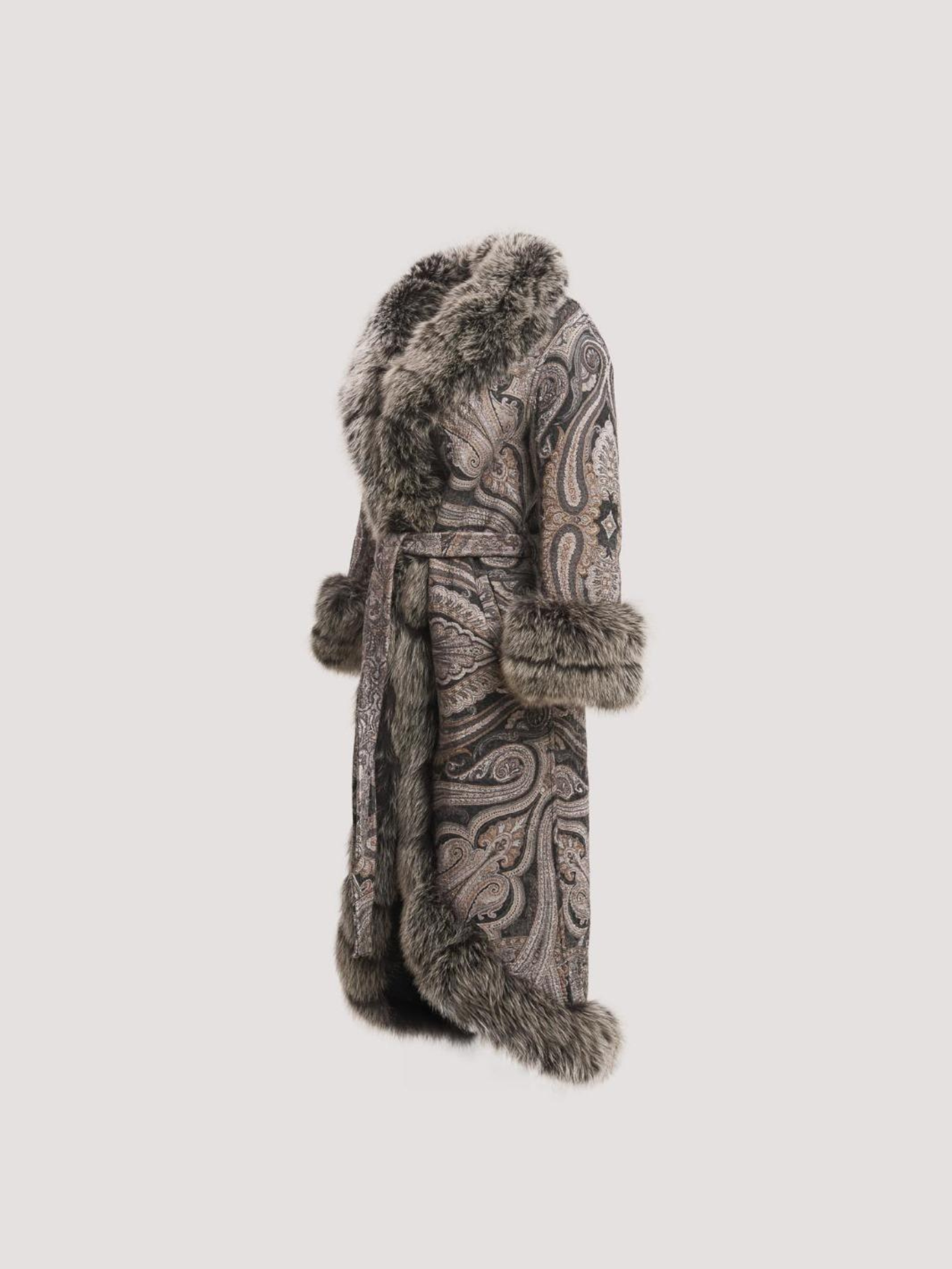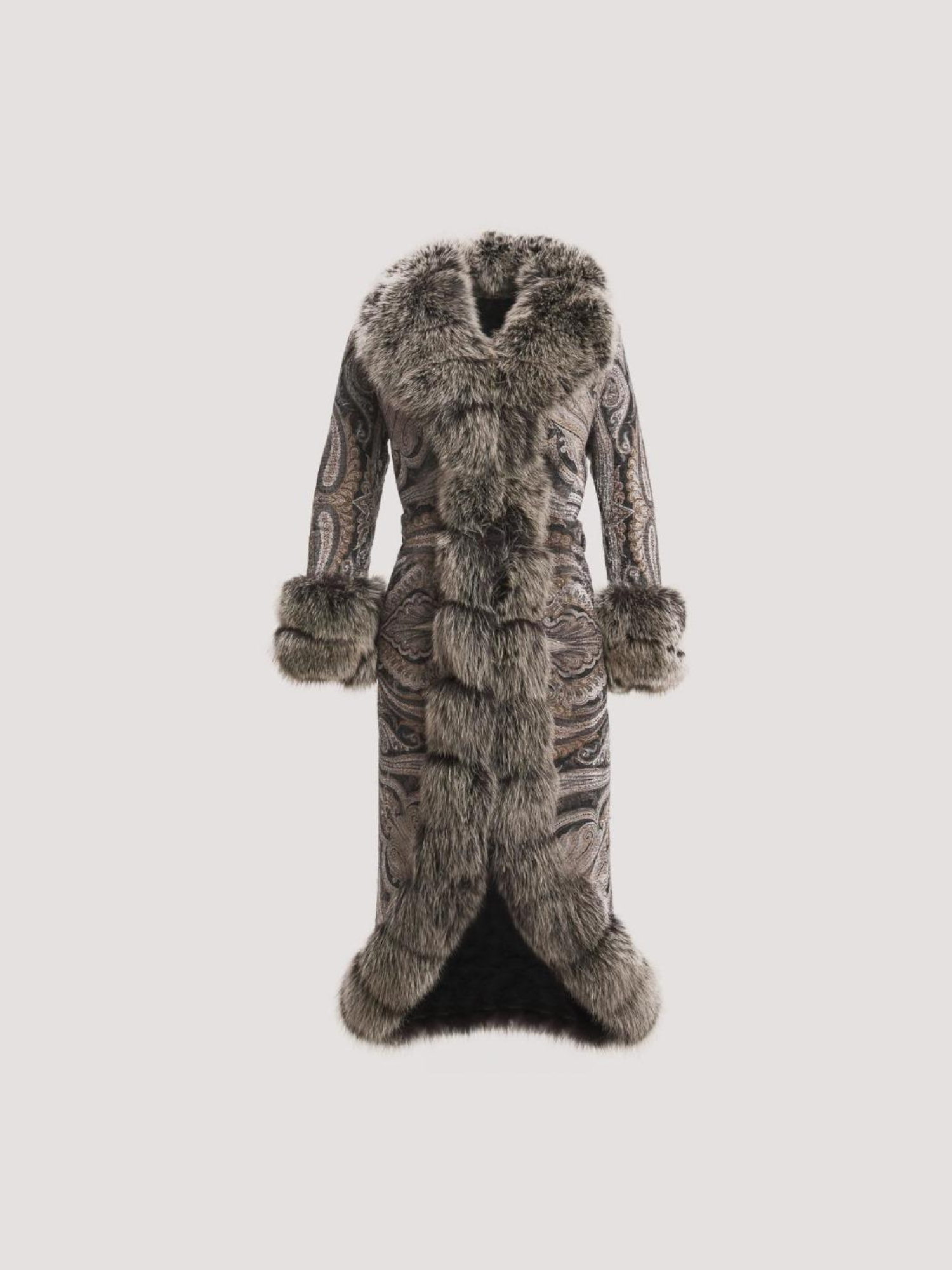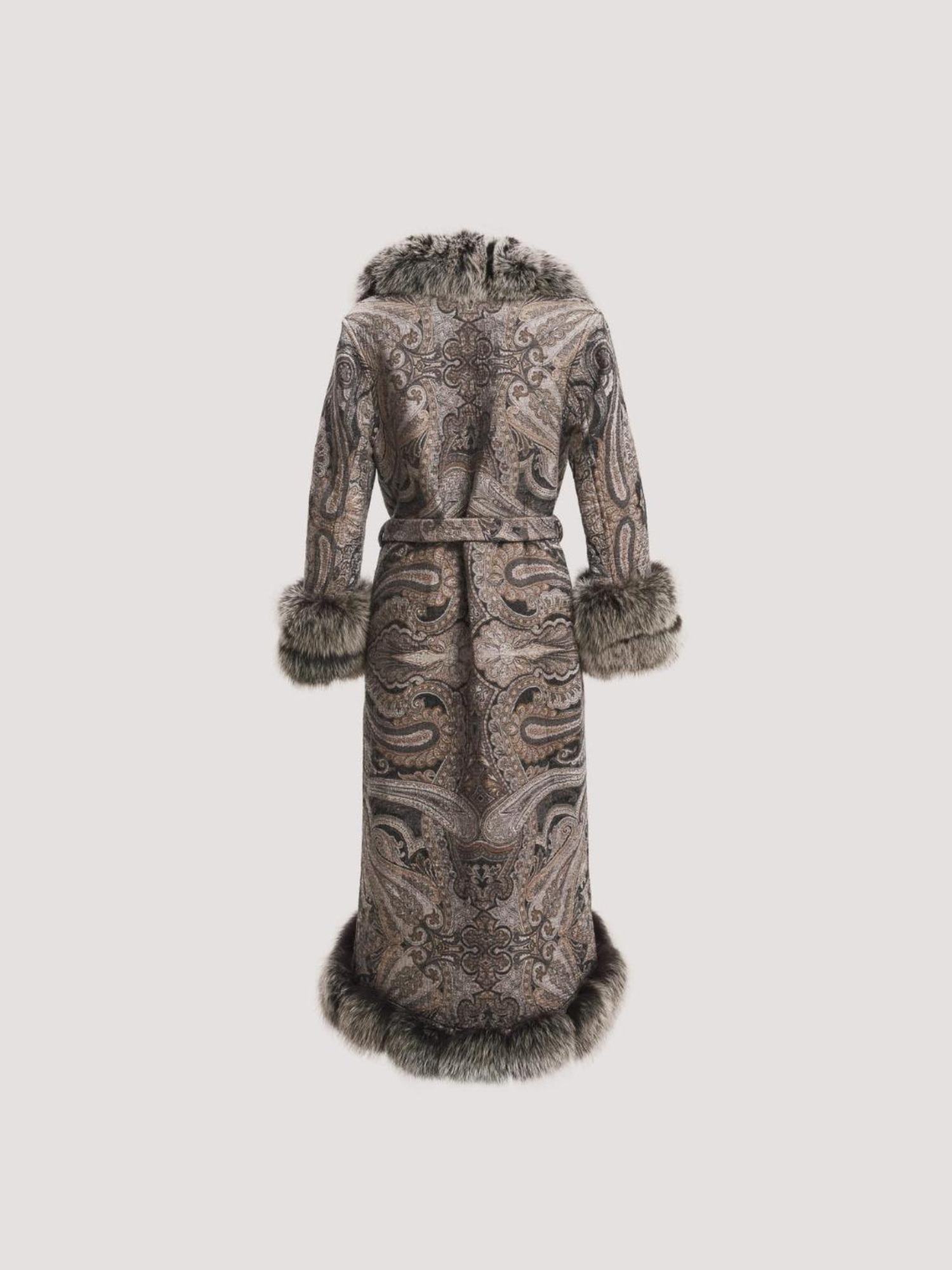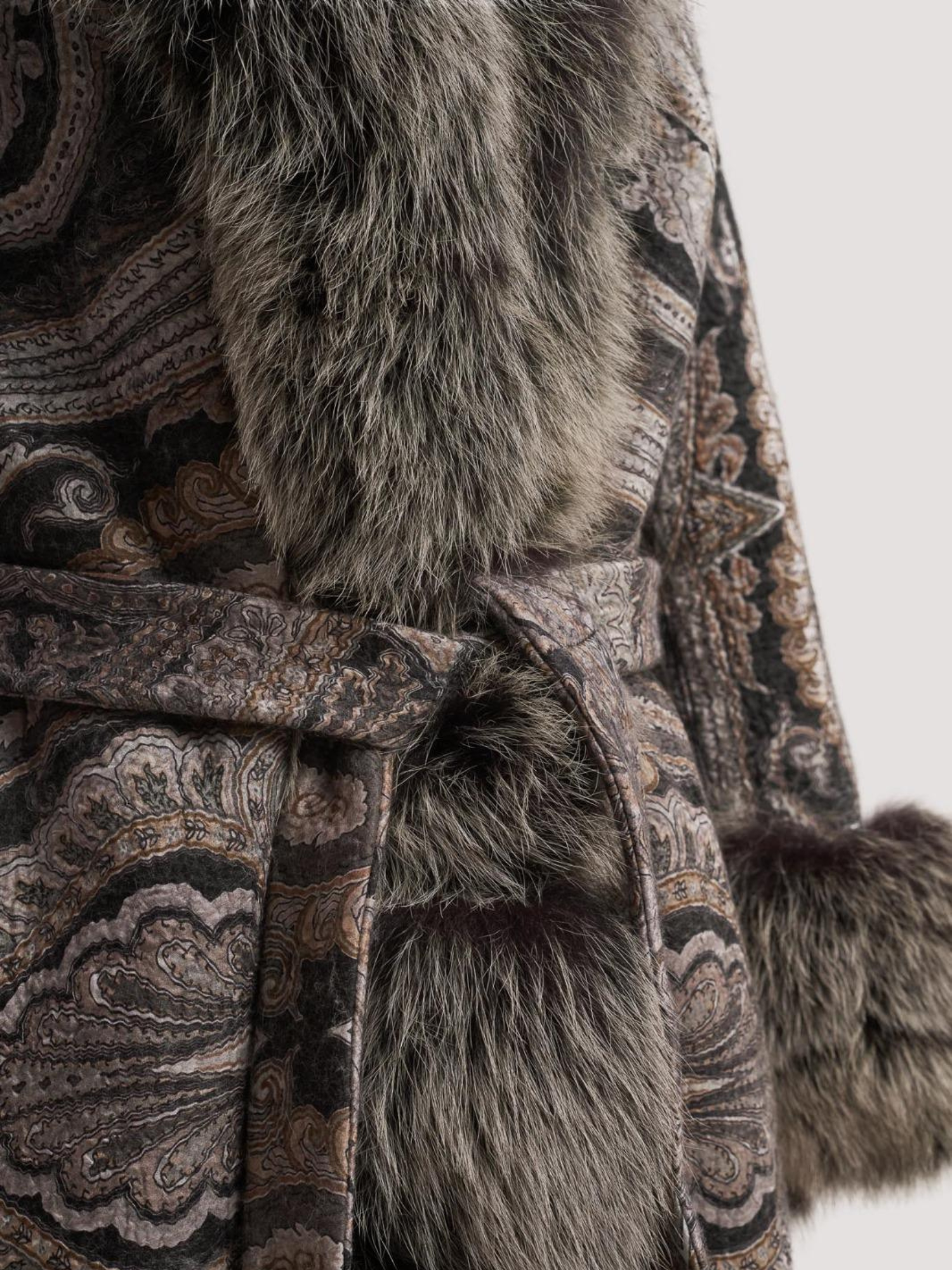 This handmade jacket is crafted with hand-felted merino wool and fox fur combines elegance and warmth.