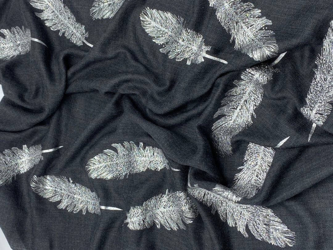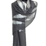Angel Feathers Crystal Feathers Shawl Stole - Charcoal Silver
