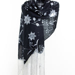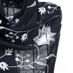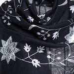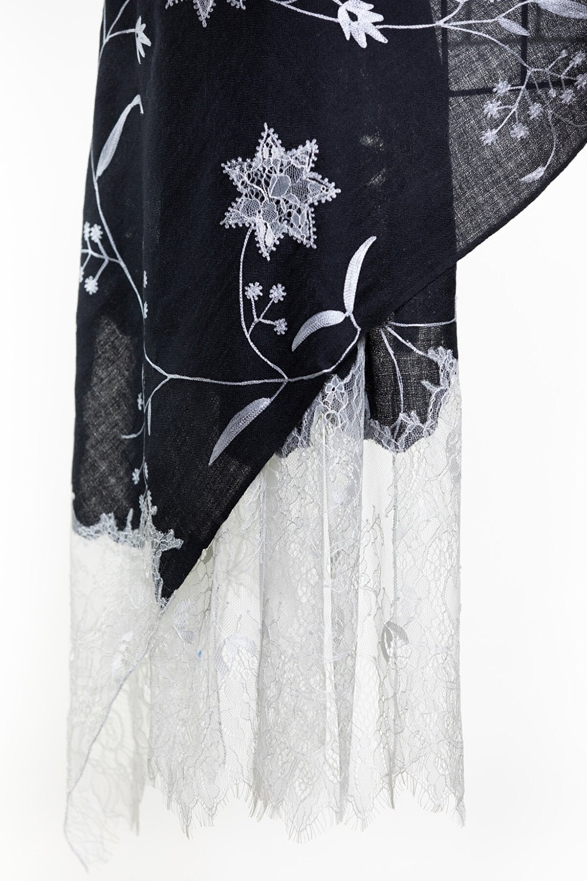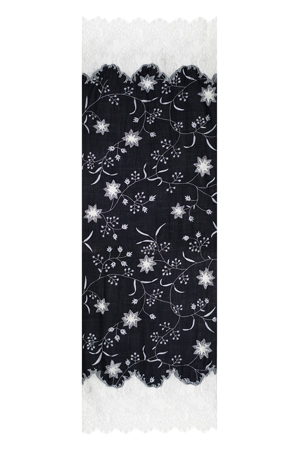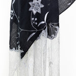 Border Lace & Embroidery Floral Sheer Shawl - Black & White