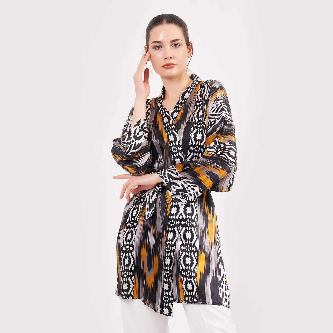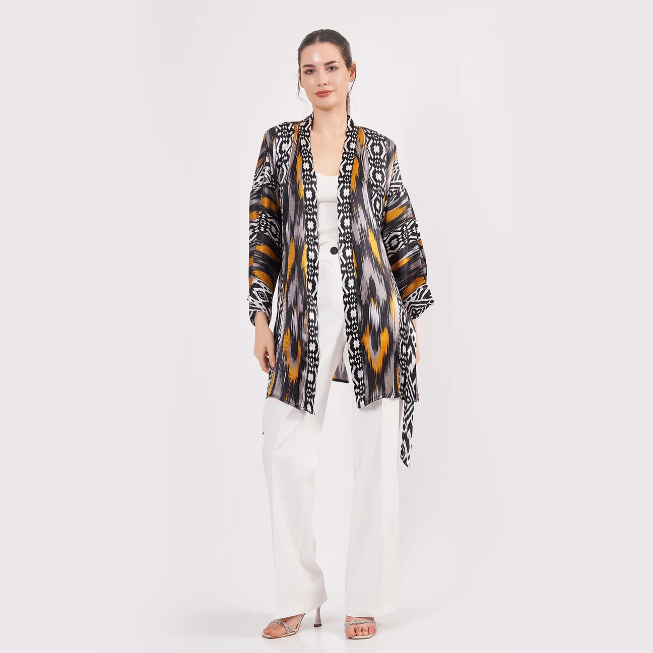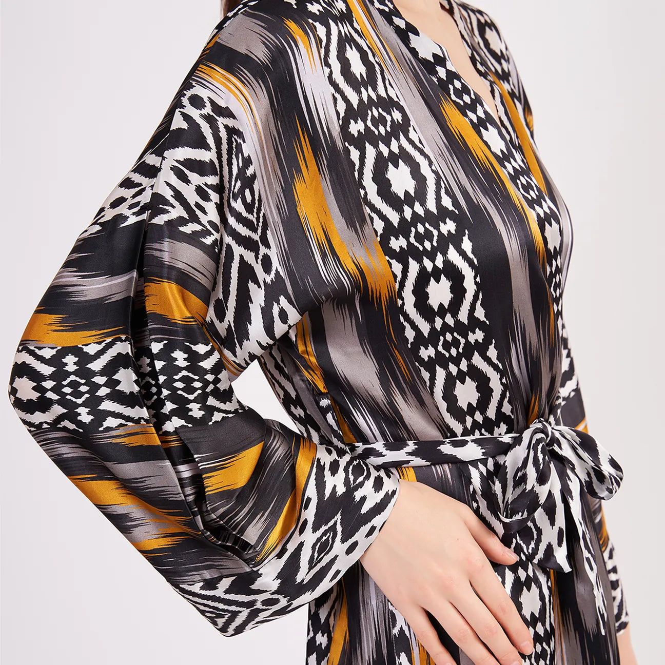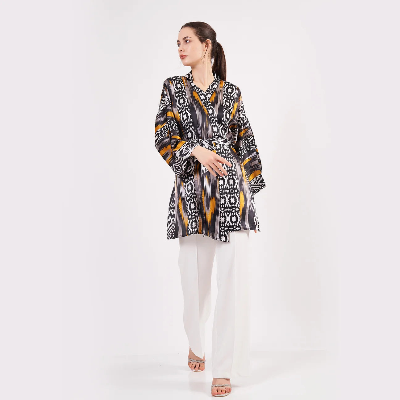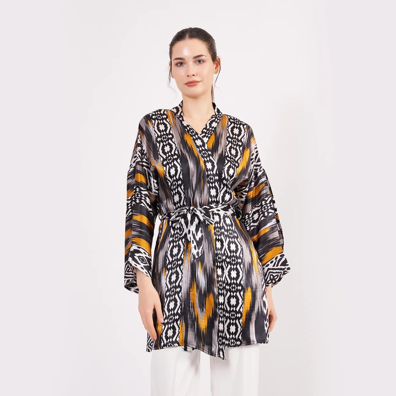 Short Kimono Belted Mulberry Silk - IKAT 8