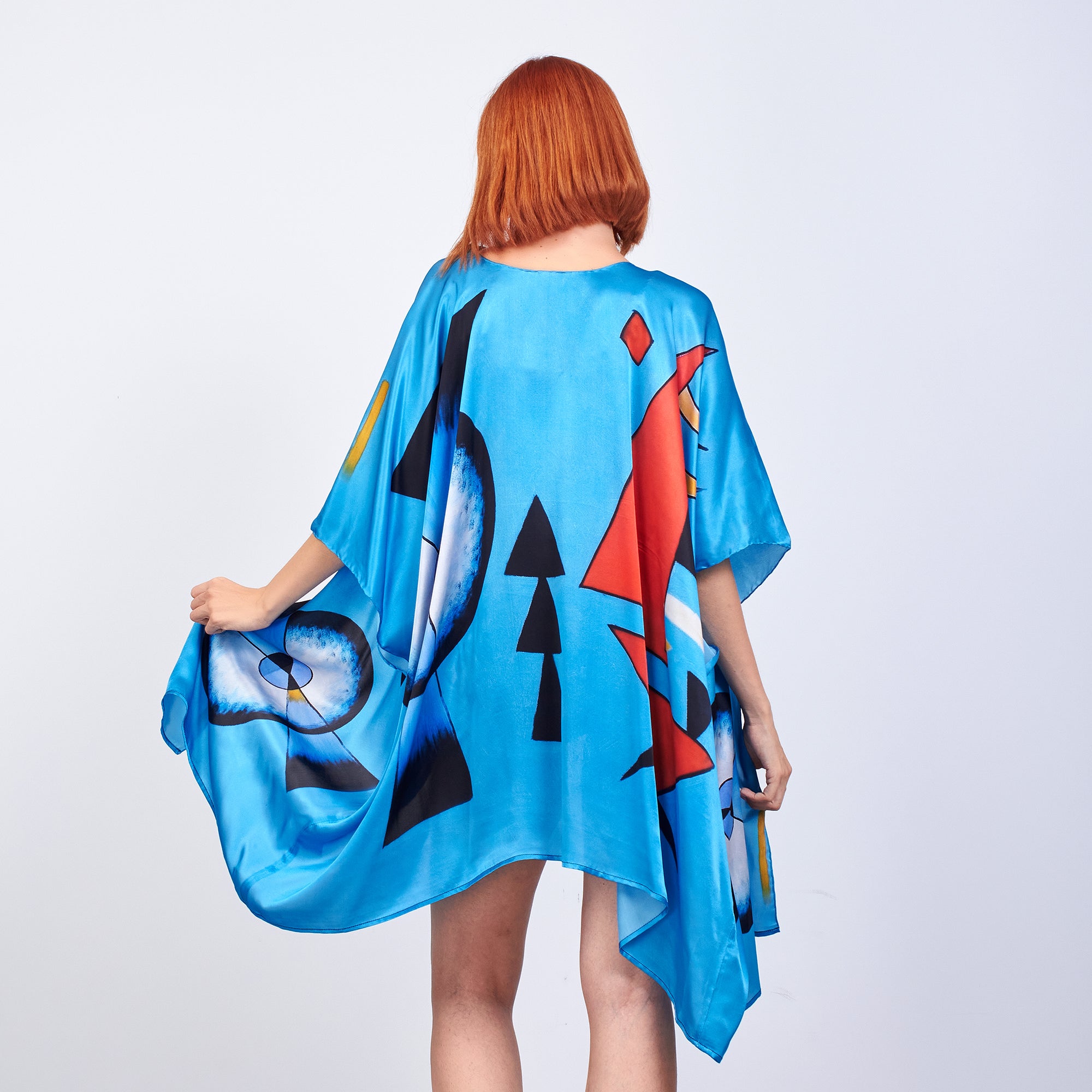 Short Kimono Pareo Mulberry Silk - Kandinsky Collage Blue