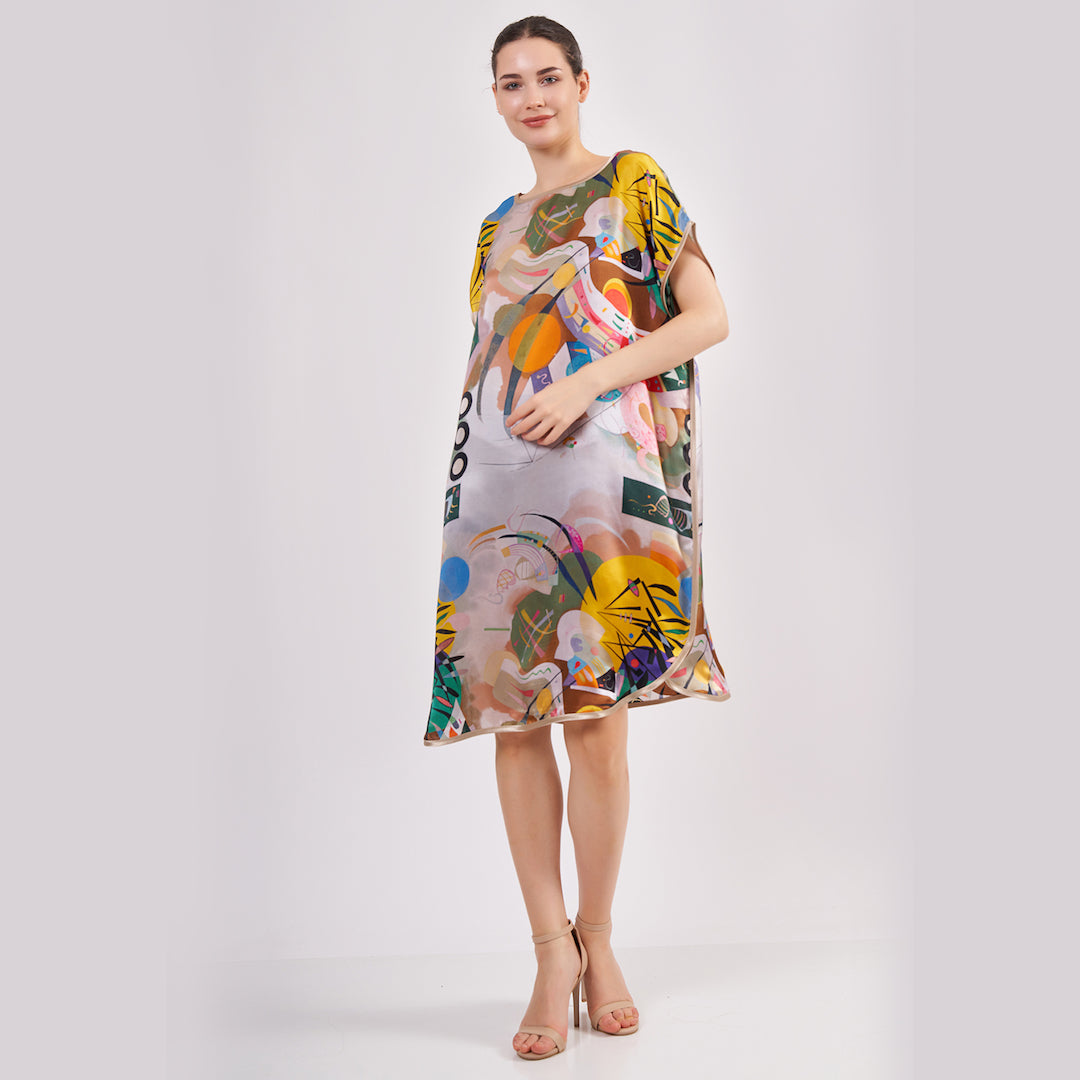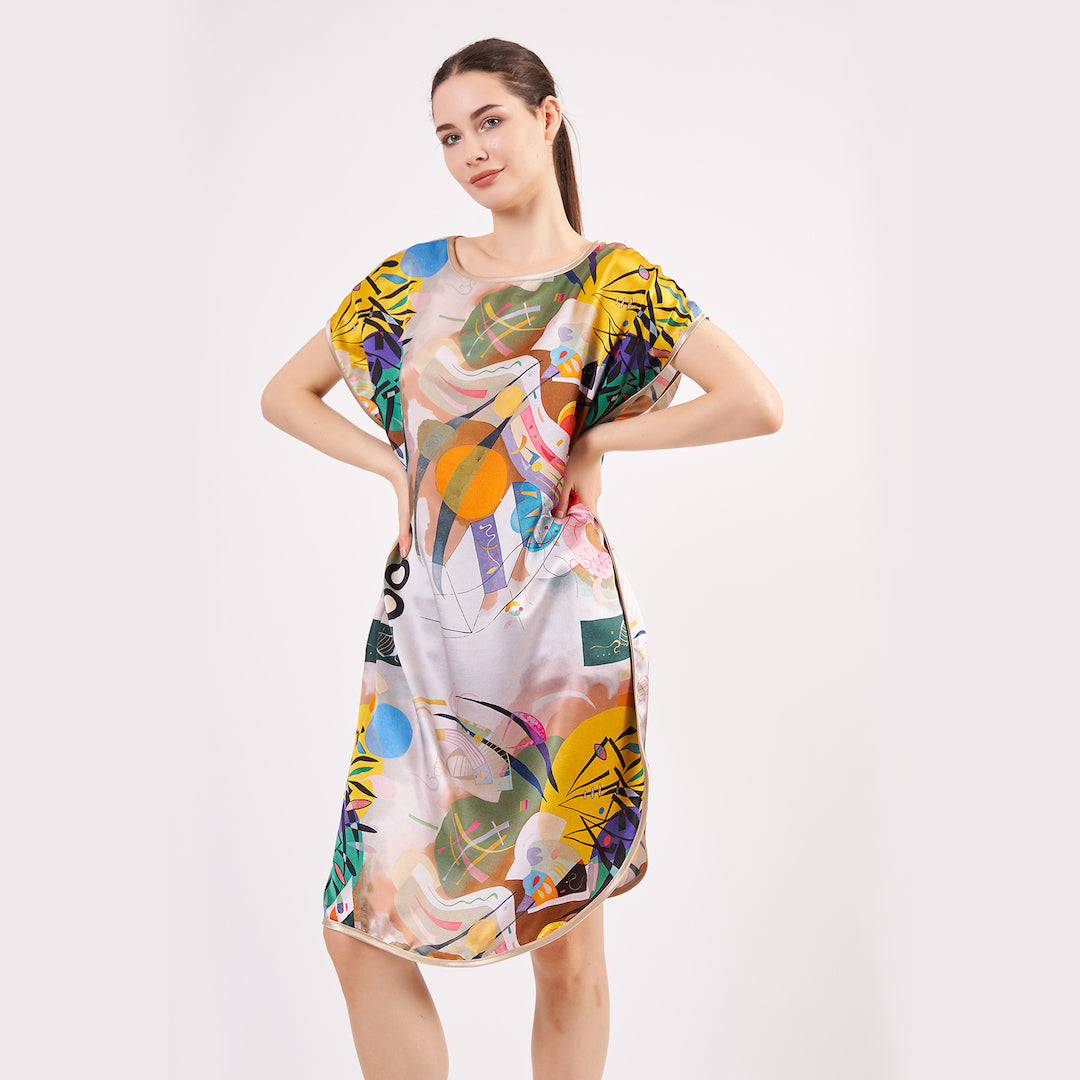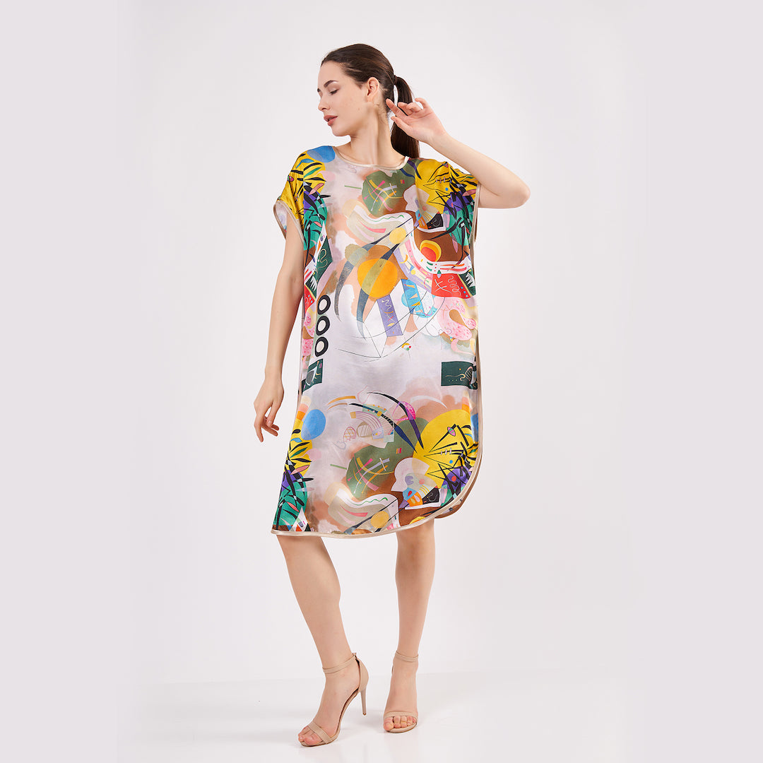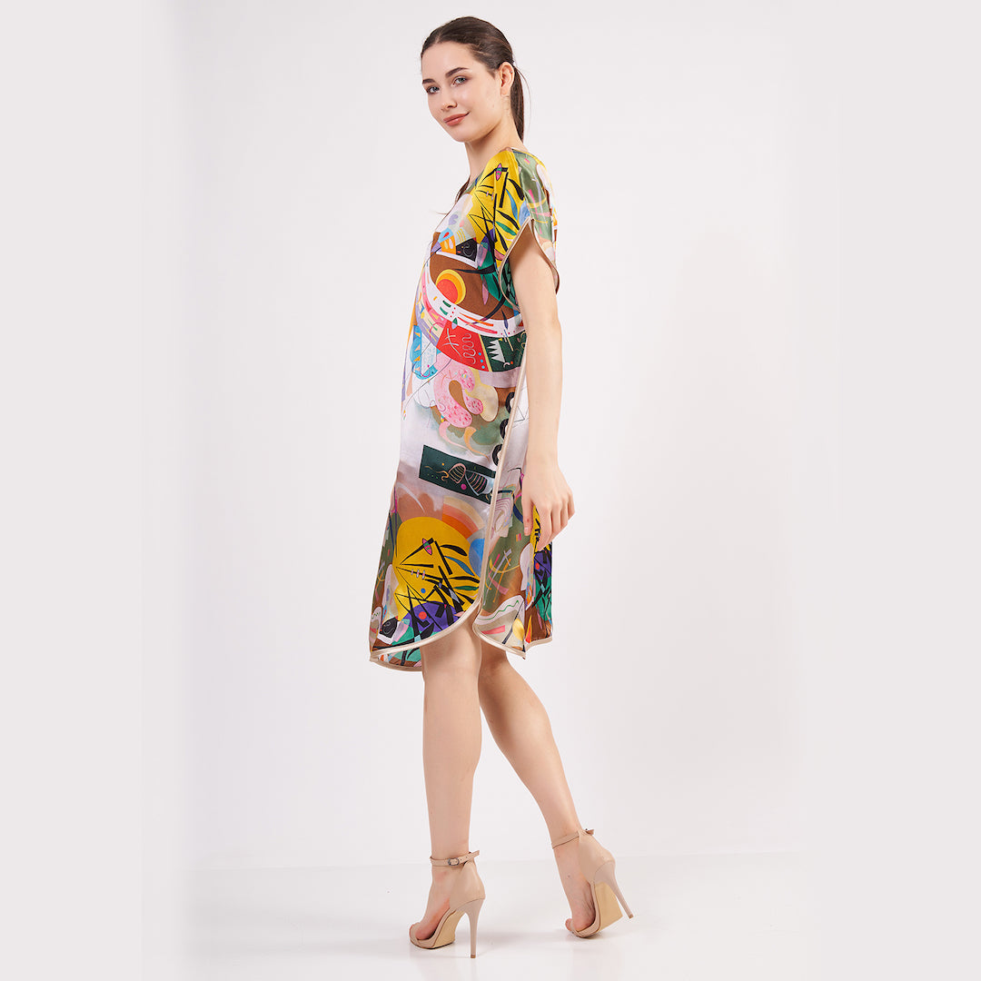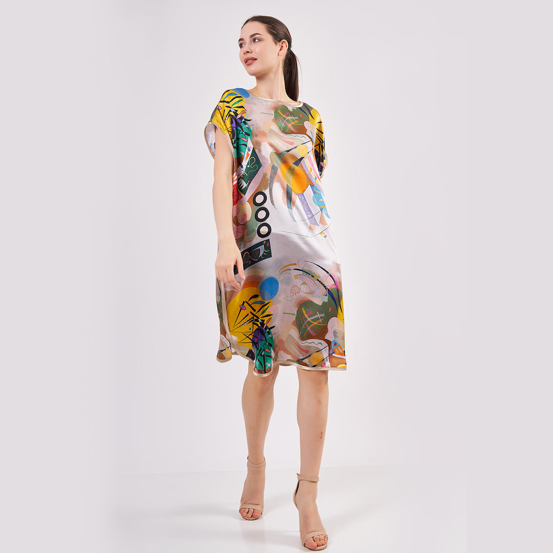Short Mulberry Silk Dress Free Flow - Dominant Curve Kandinsky