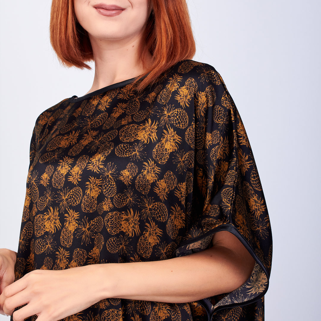 Short Mulberry Silk Dress Free Flow - Gold Pineapple