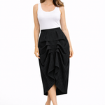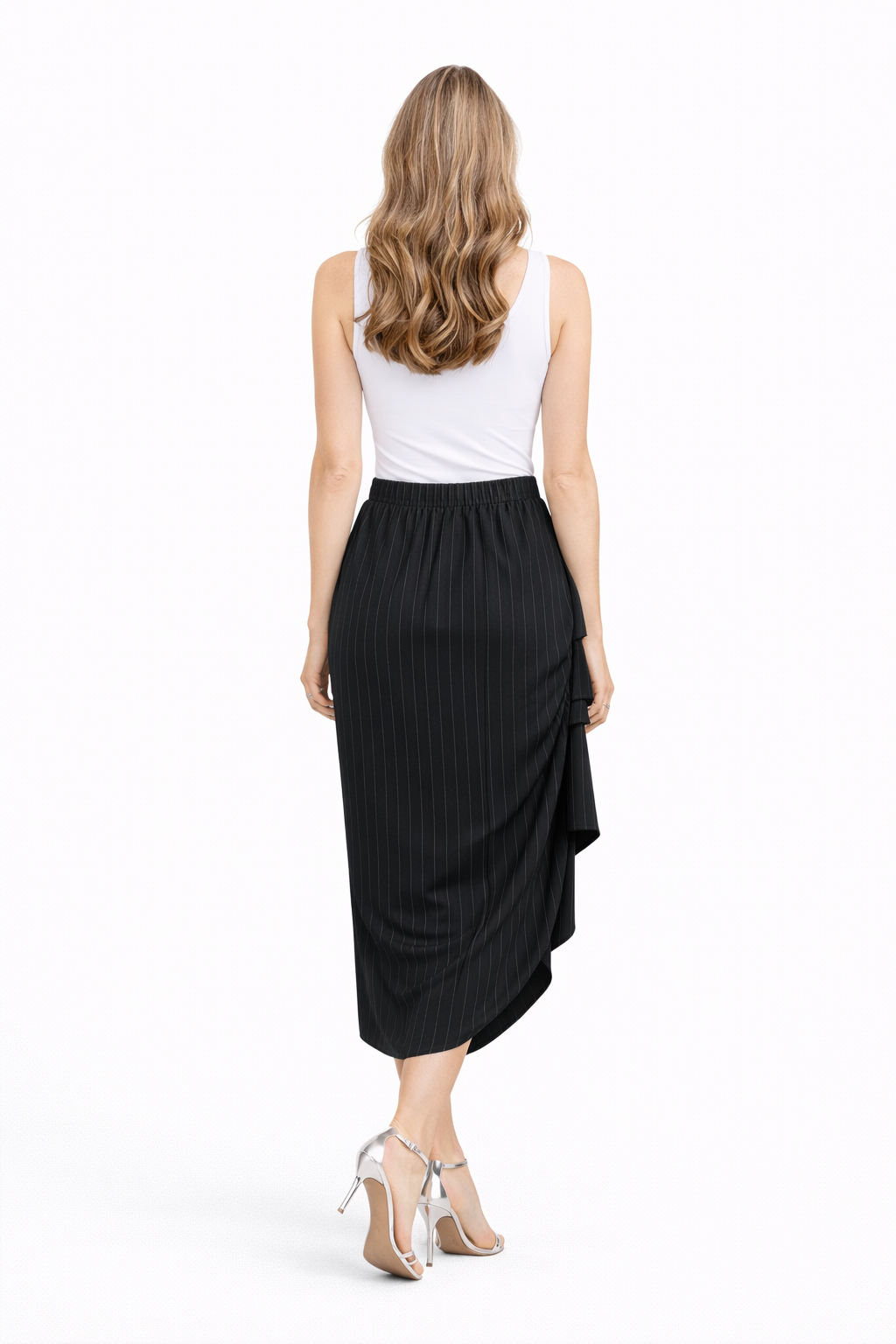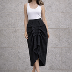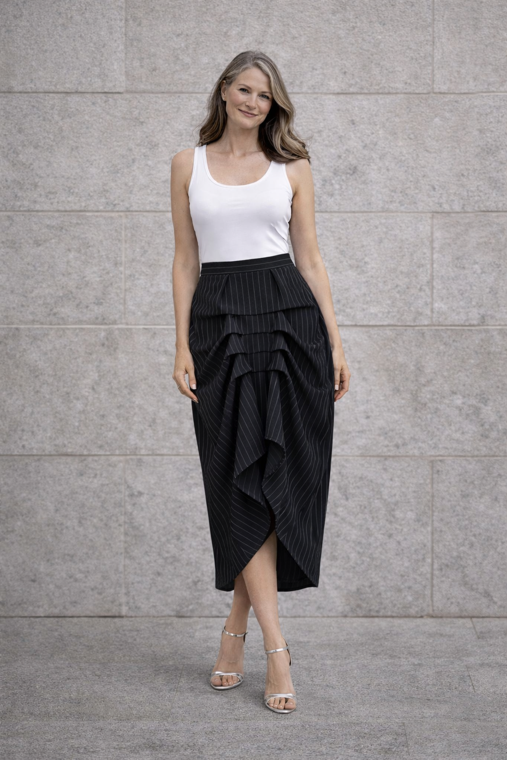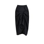 Step into structured elegance with The Vanguard Skirt — a bold, sculptural piece that redefines classic tailoring. This high-waisted skirt features architectural draping and asymmetrical folds that create depth, volume, and movement. The carefully engineered construction draws inspiration from modernist design, offering a refined silhouette that’s both powerful and artful.