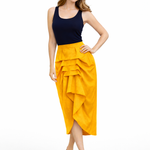 Step into structured elegance with the Vanguard Skirt — a bold, sculptural piece that redefines classic tailoring. This high-waisted silhouette features architectural draping and asymmetrical folds that create depth, volume, and fluid movement.