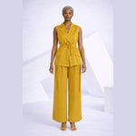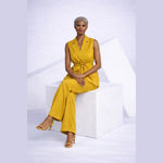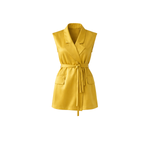 Structured yet fluid, the Arma Vest reimagines the classic jacket with a sleeveless, belted silhouette. The deep V-neckline and sharp lapels create a bold, confident frame, while the adjustable self-tie belt cinches the waist for a flattering shape. Functional patch pockets bring a utility touch to this tailored summer staple.