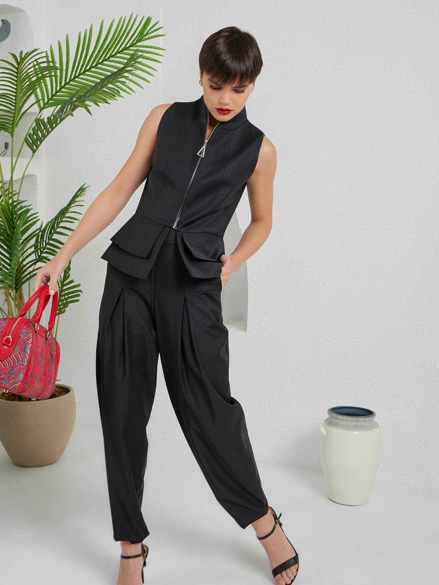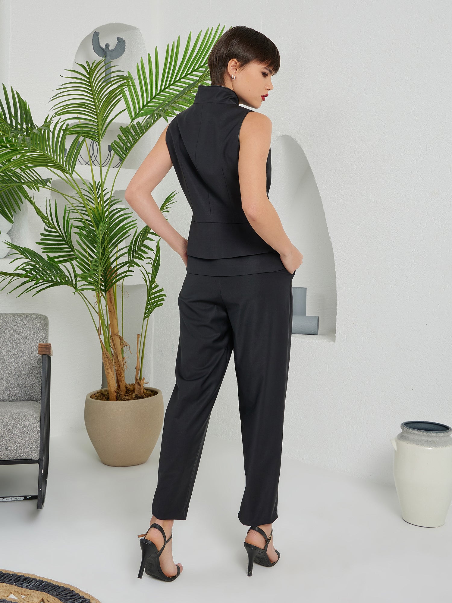 Construct Vest Suit & Pants Ensemble Black