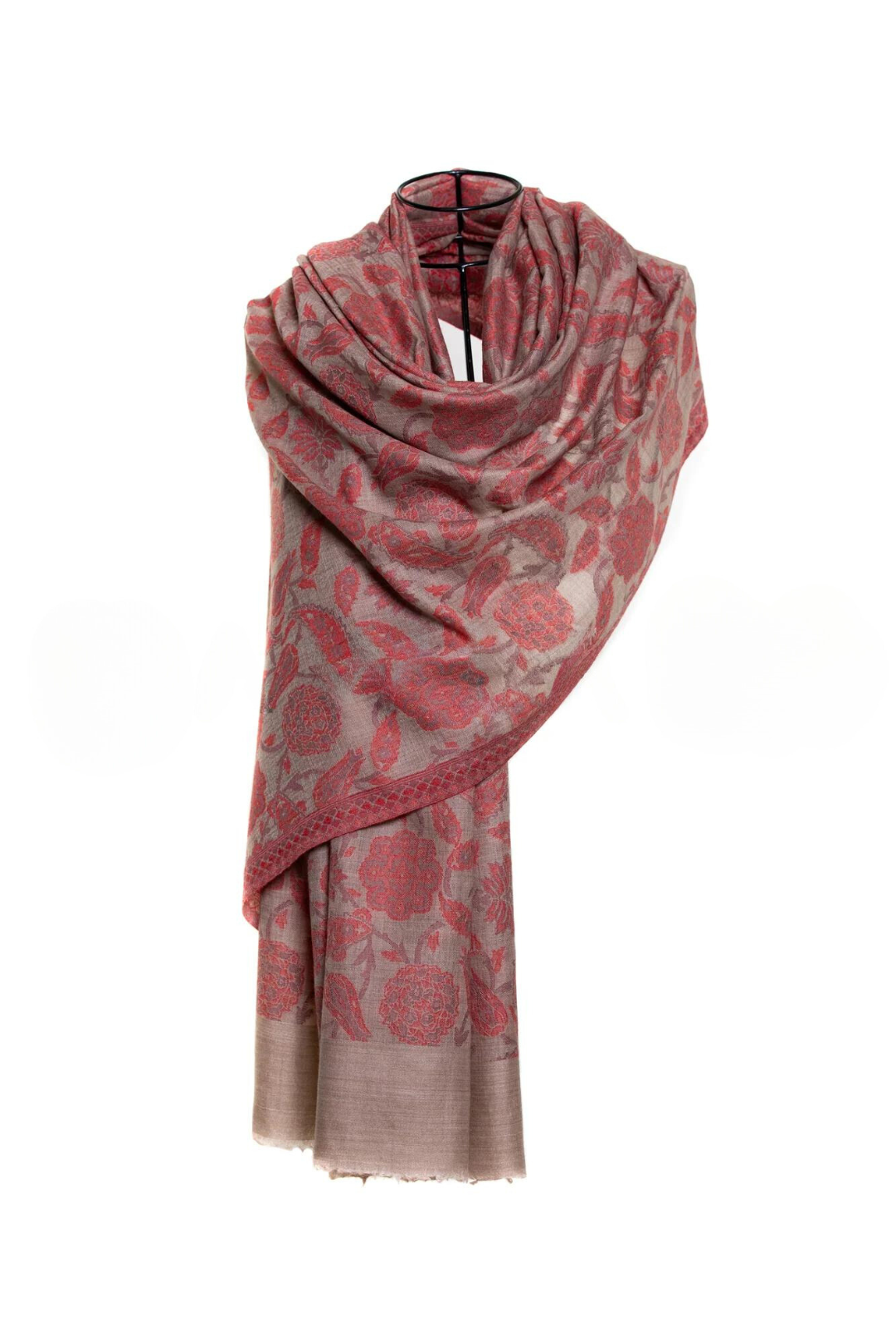 Abstract Floral Paisley Cashmere Pashmina Shawl - Red