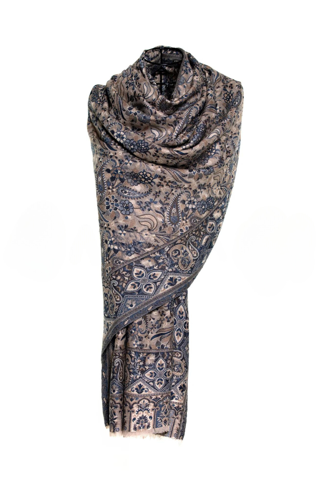Tribal Paisley Cashmere Pashmina Shawl - Blue