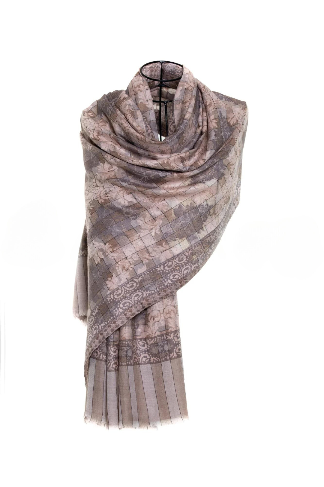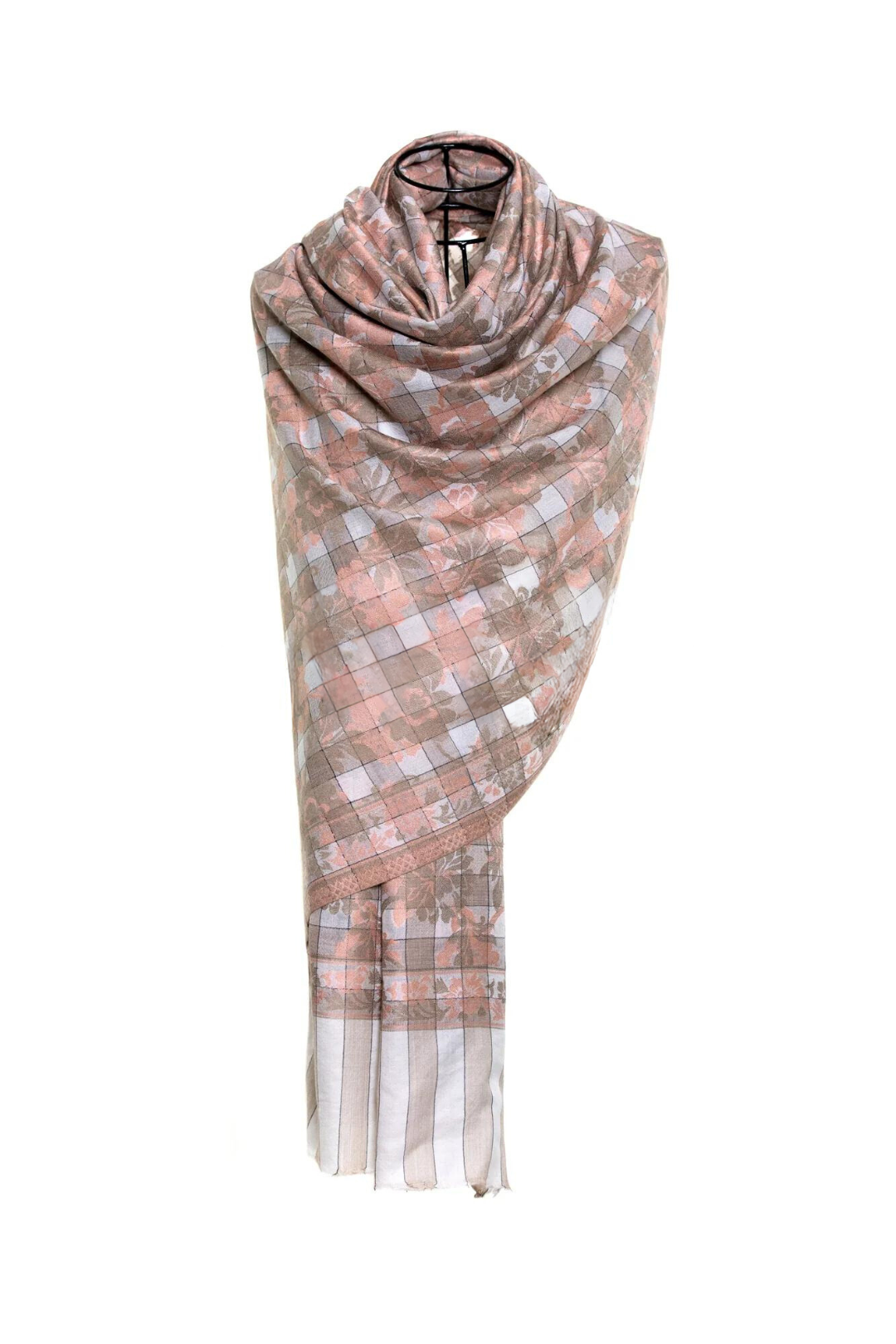 Checkers Floral Cashmere Pashmina Shawl - Brown