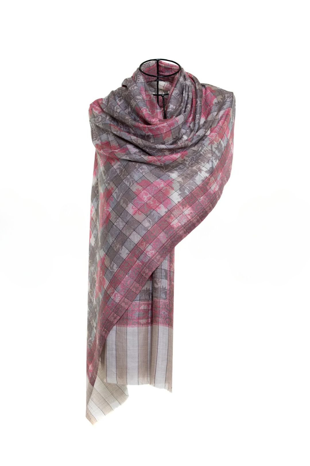 Checkers Paisley Cashmere Pashmina Shawl - Pink
