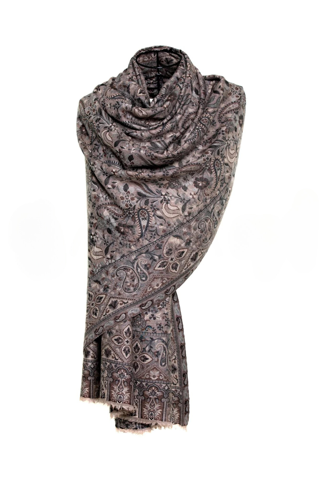 Tribal Paisley Cashmere Pashmina Shawl - Espresso