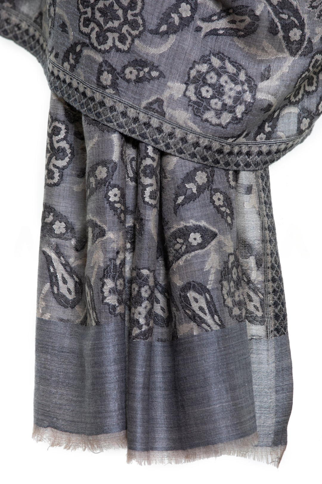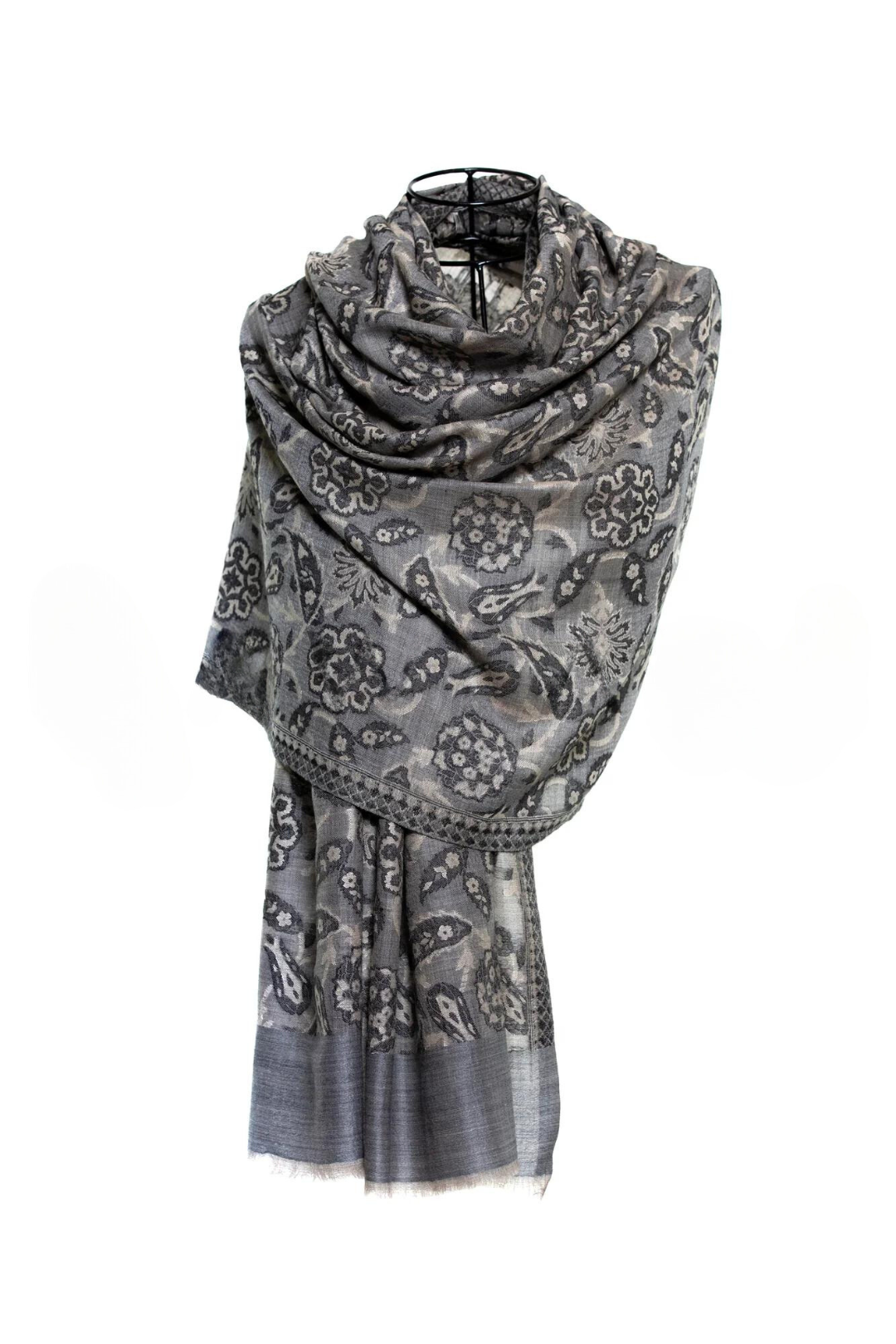 Abstract Floral Paisley Cashmere Pashmina Shawl - Gray