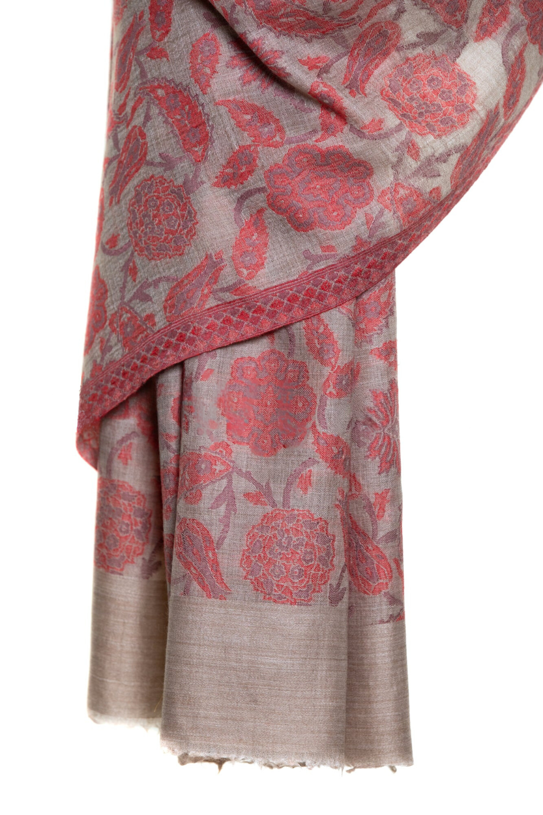 Abstract Floral Paisley Cashmere Pashmina Shawl - Natural