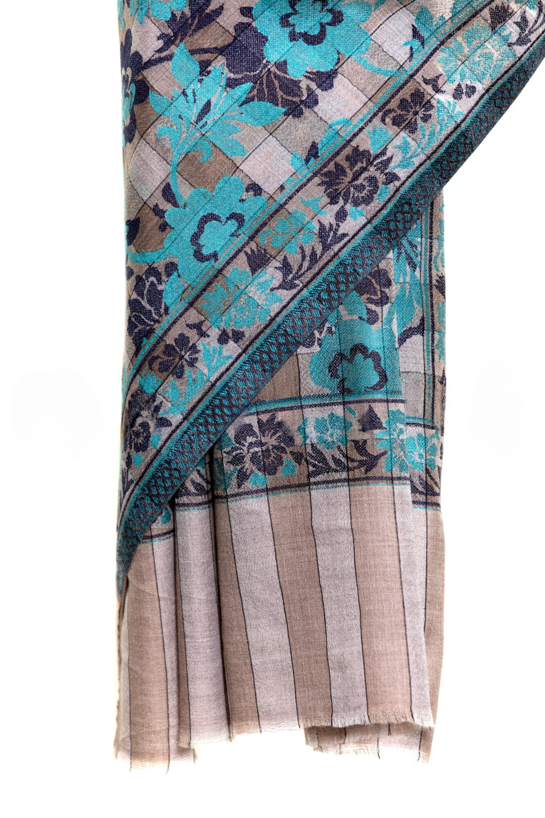 Checkers Floral Cashmere Pashmina Shawl - Turquoise