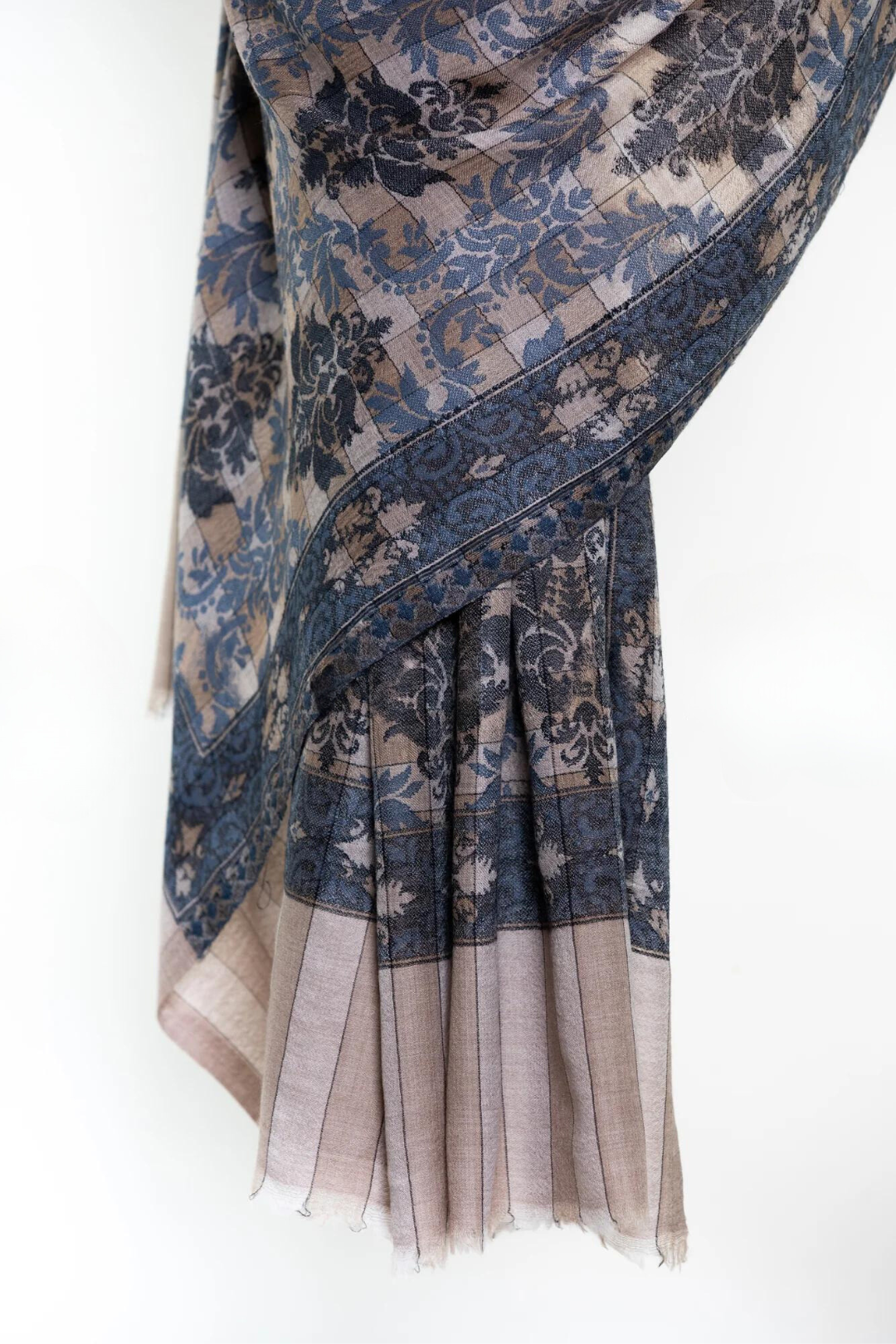 Checkers Floral Cashmere Pashmina Shawl - Blue