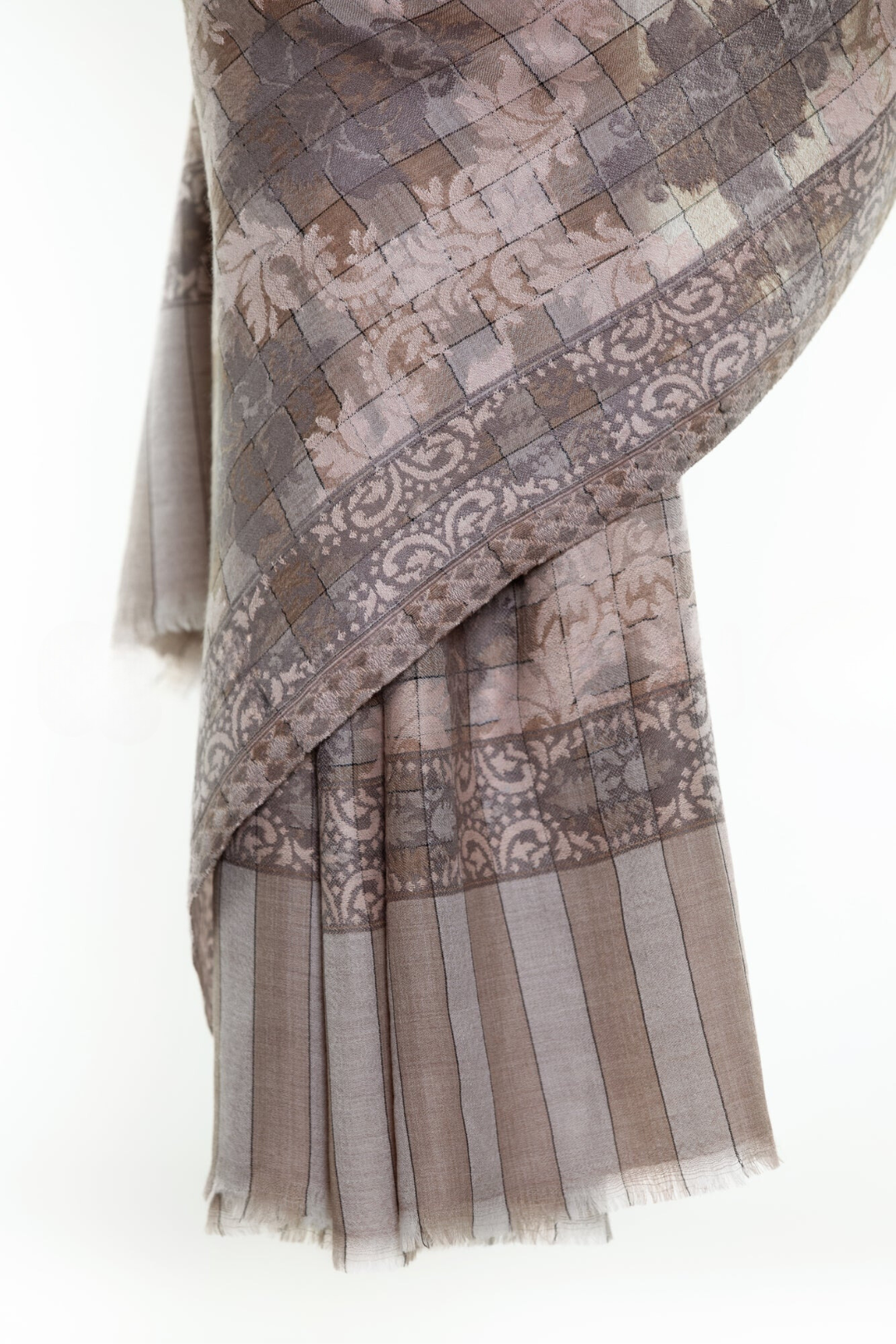 Checkers Paisley Cashmere Pashmina Shawl - Brown