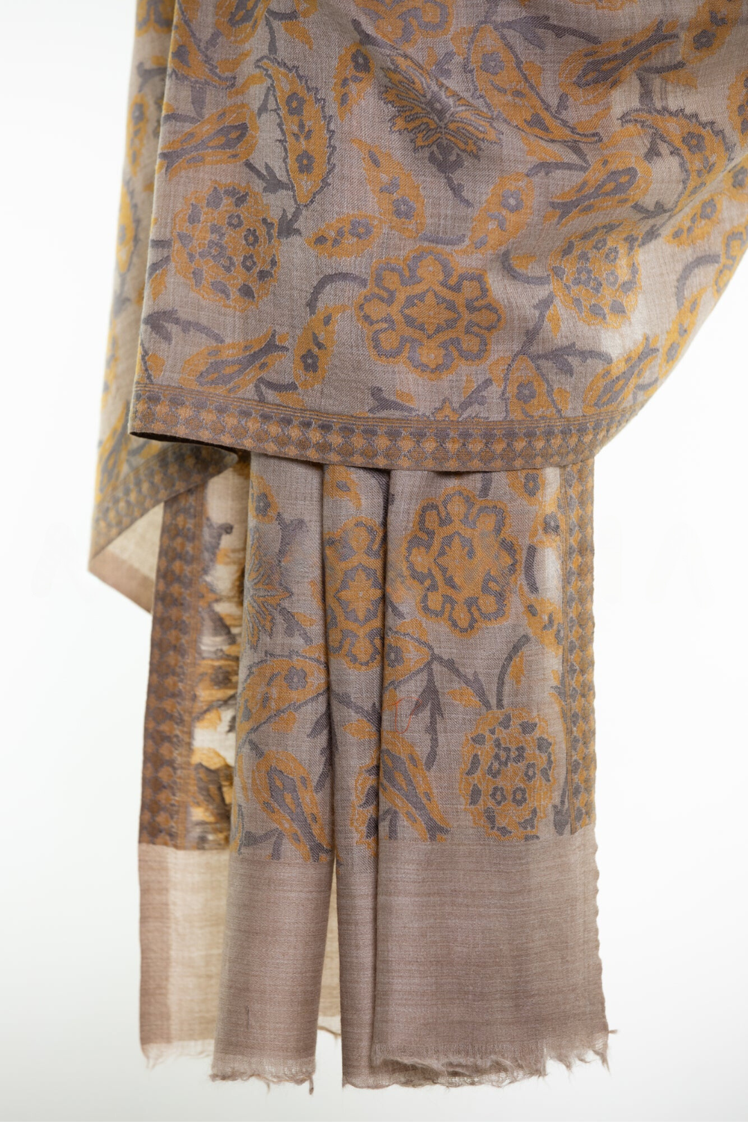 Tribal Paisley Cashmere Pashmina Shawl -Mustard