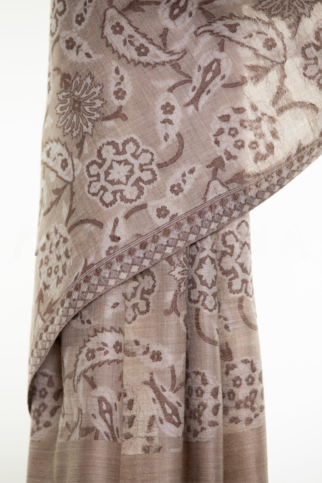 Abstract Floral Paisley Cashmere Pashmina Shawl - Espresso