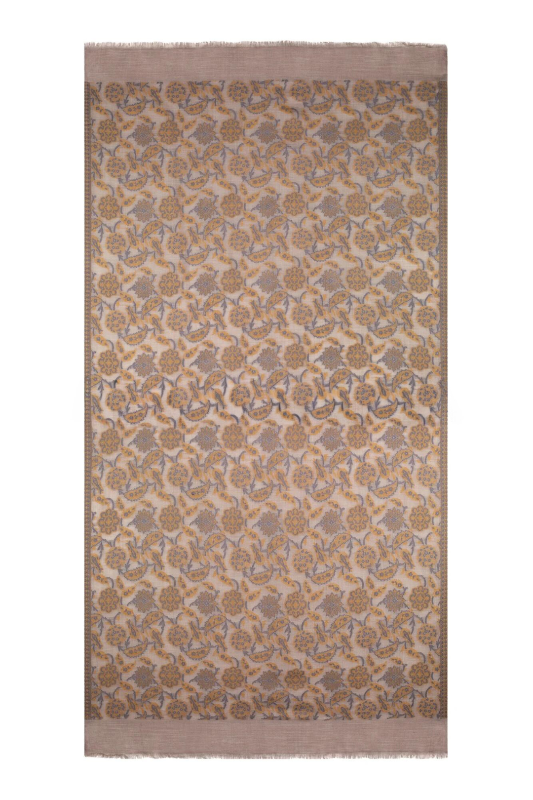 Abstract Floral Paisley Cashmere Pashmina Shawl - Mustard