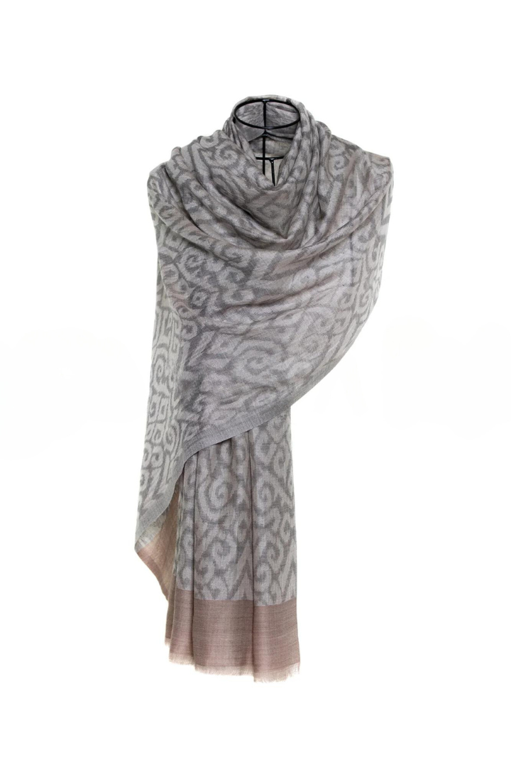 Tribal Ikat Print Cashmere Pashmina Shawl - Ivory