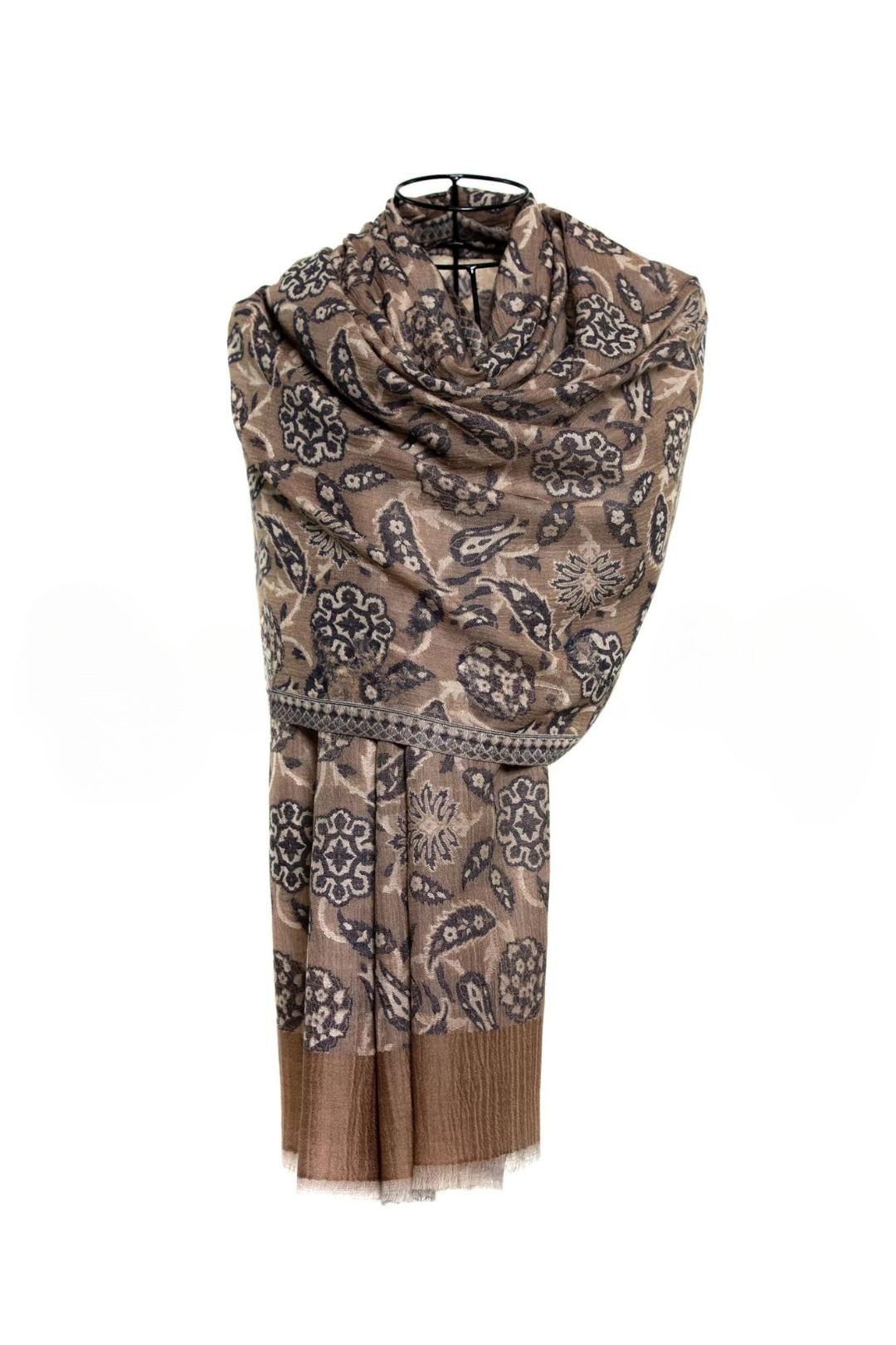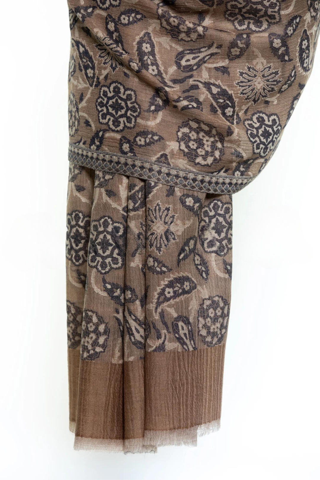 Abstract Floral Paisley Cashmere Pashmina Shawl - Espresso