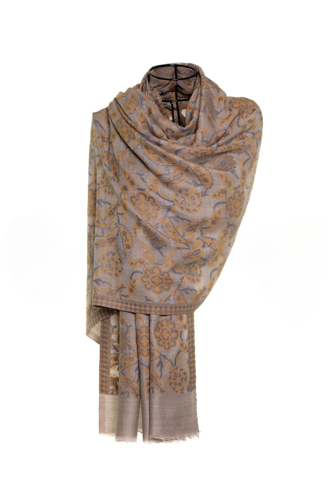 Let your sophistication and style shine in this exquisite pashmina cashmere shawl adorned with an exquisite abstract floral design with subtle paisley print.