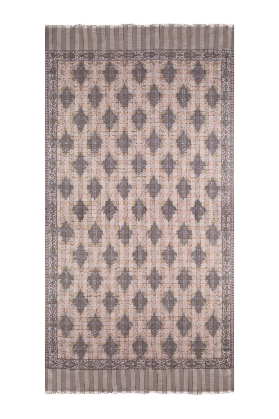 Let your sophistication and style shine in this exquisite pashmina cashmere shawl adorned with an exquisite checkers design with subtle paisley print.