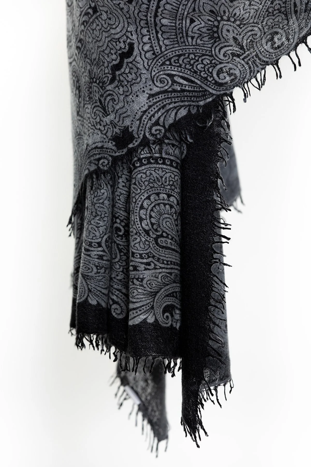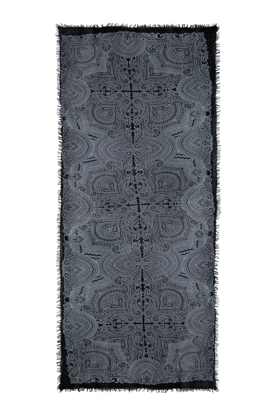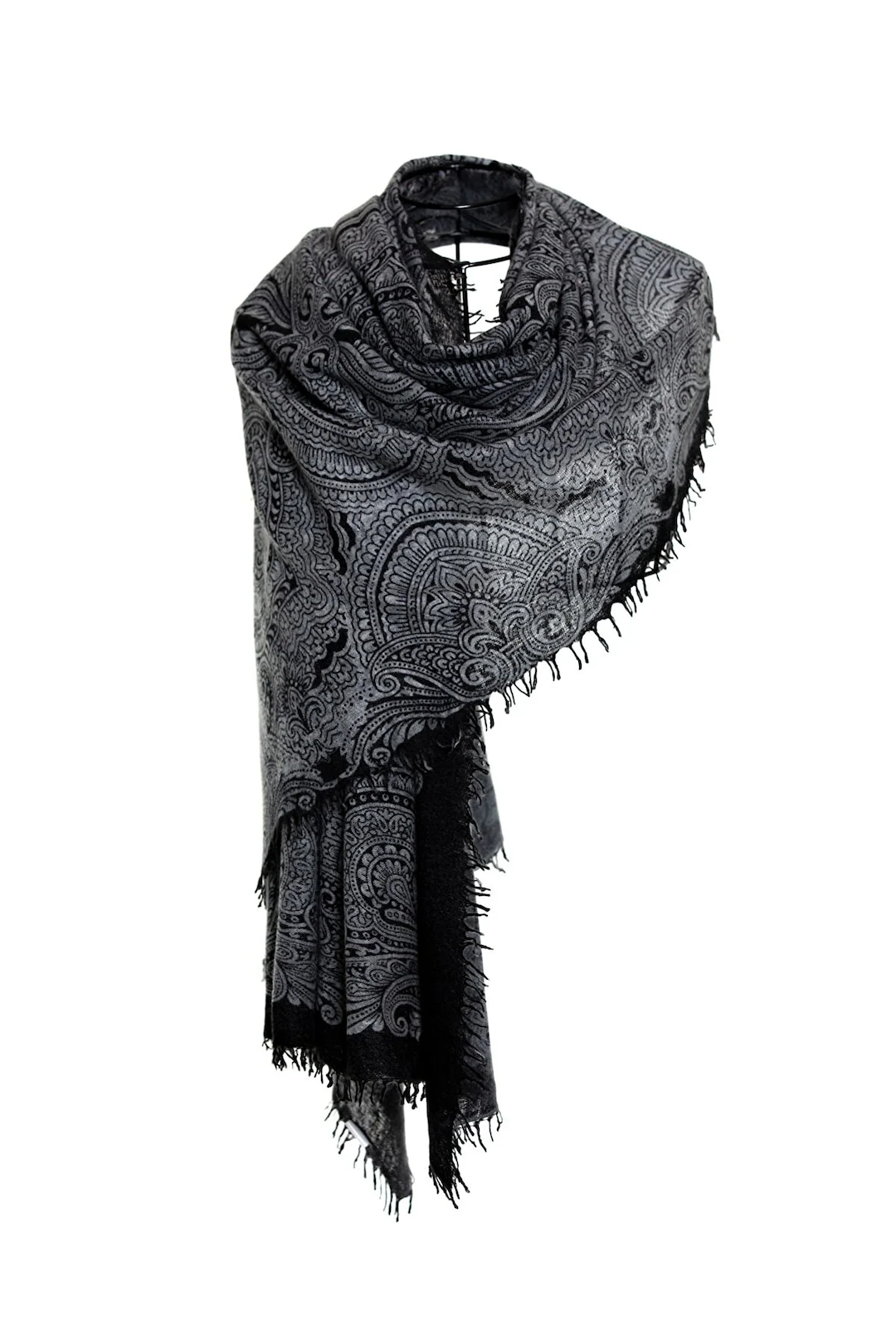 Sparge Thick Knit Baby Cashmere Printed Shawl Paisley - Black