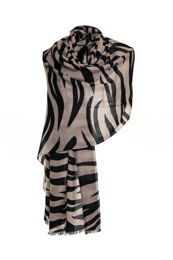 Zebra Design Baby Cashmere Shawl - Sepia Black