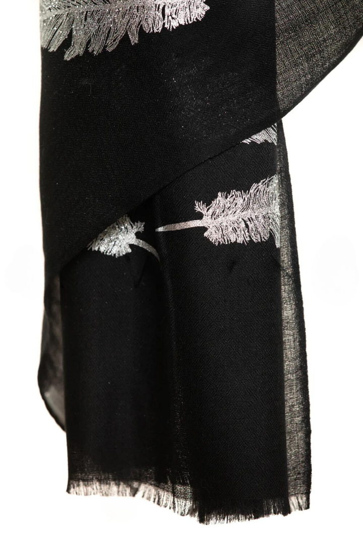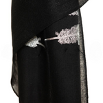 The Angel Crystal Feathers stole is truly a unique and exclusive piece that is sure to turn heads. It is crafted from a blend of cashmere and silk, two luxurious materials known for their softness and high-end quality. The combination of these materials creates a fabric that is not only incredibly soft but also lightweight and warm, making it perfect for use in any season.