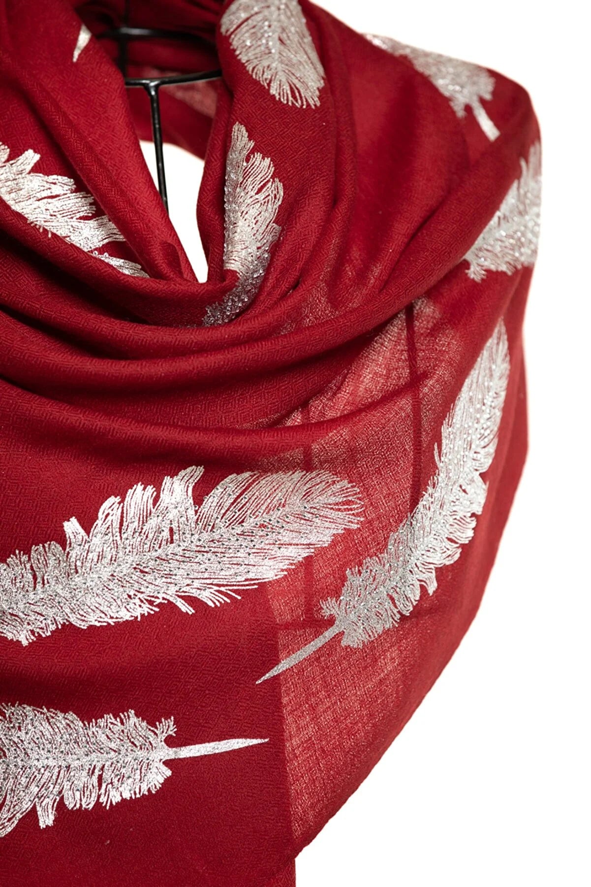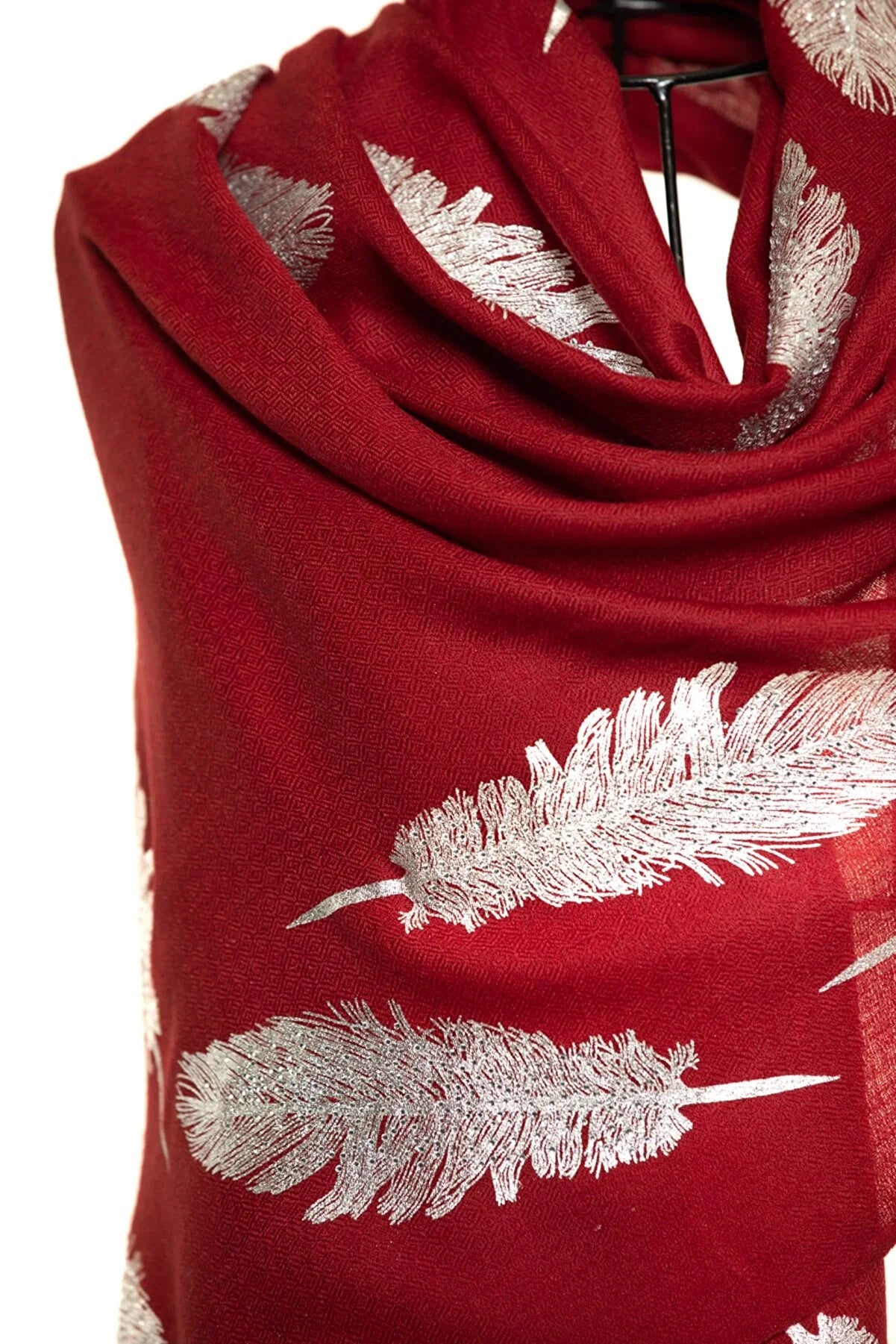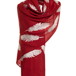 Angel Feathers Crystal Feathers Shawl Stole - Burgundy Silver