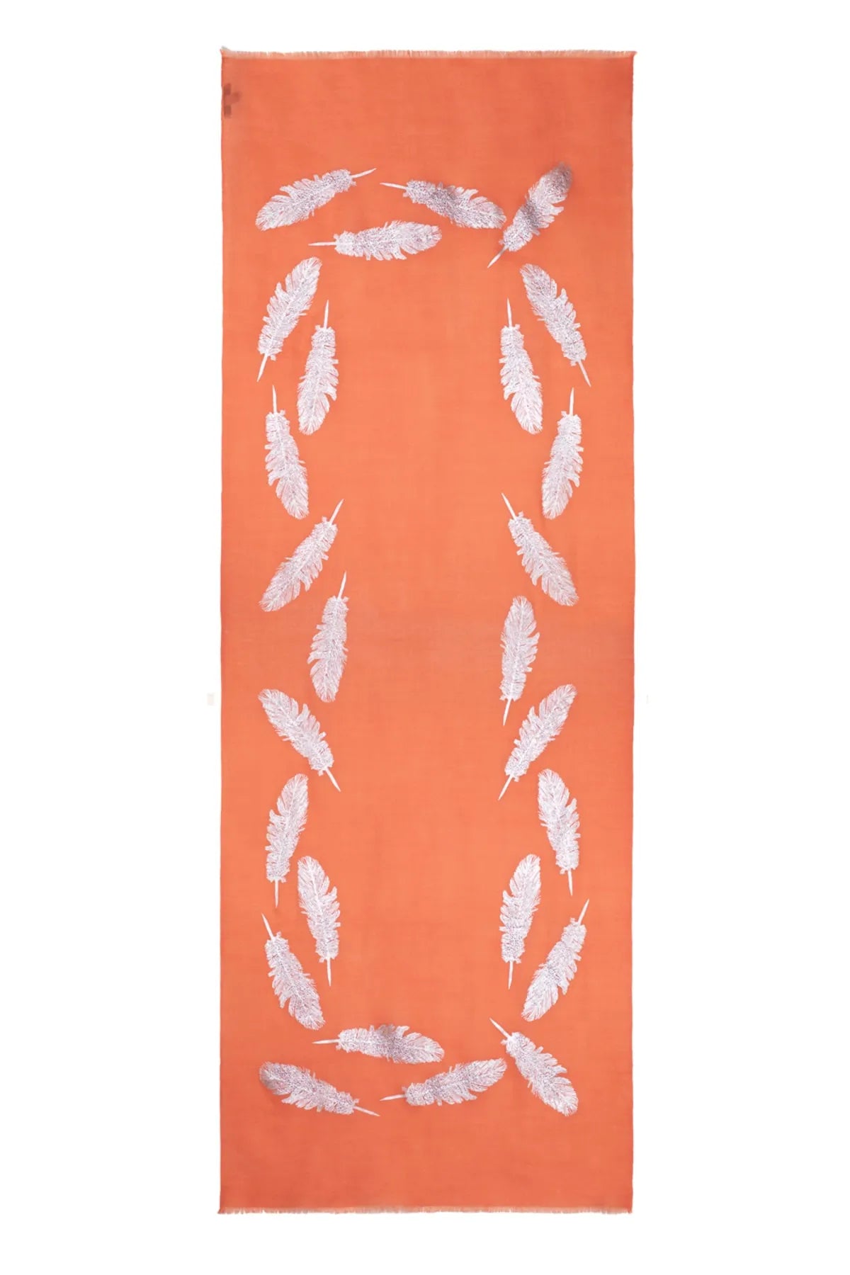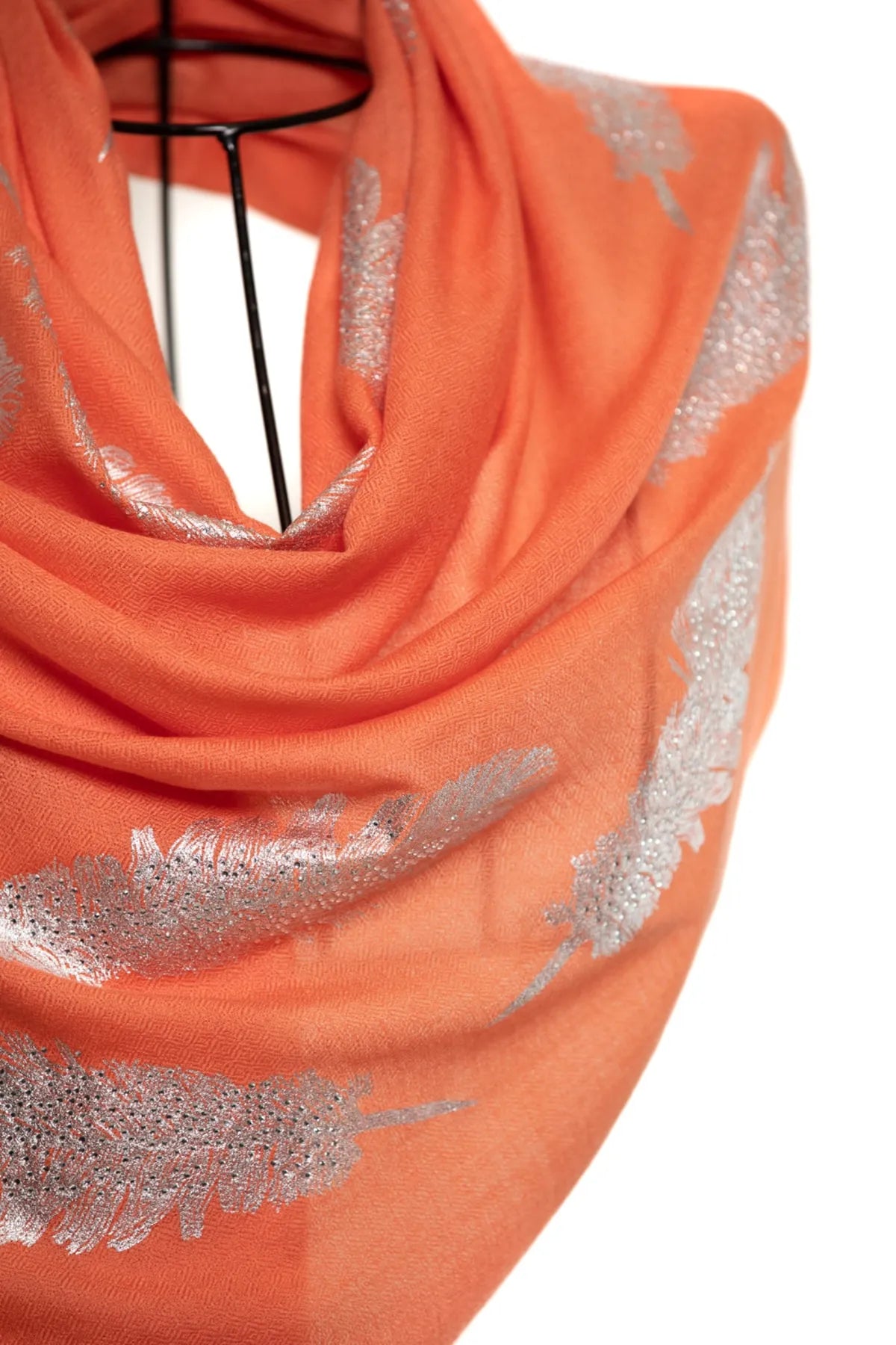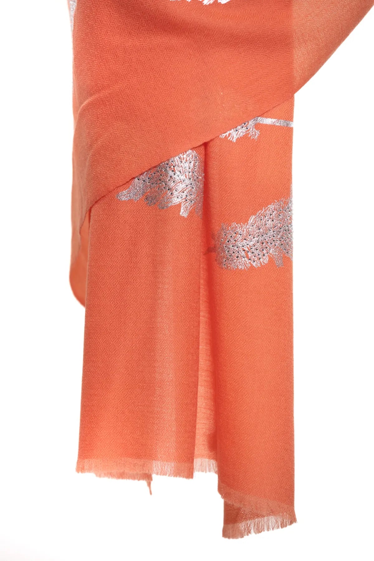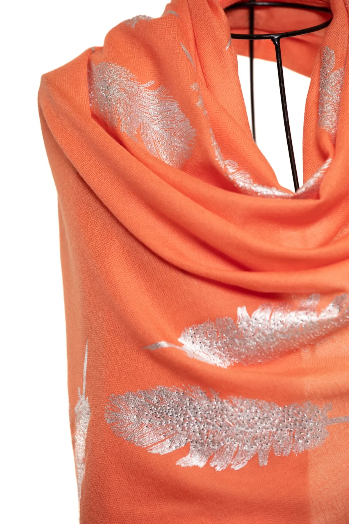 Angel Feathers Crystal Feathers Shawl Stole - Peach Silver