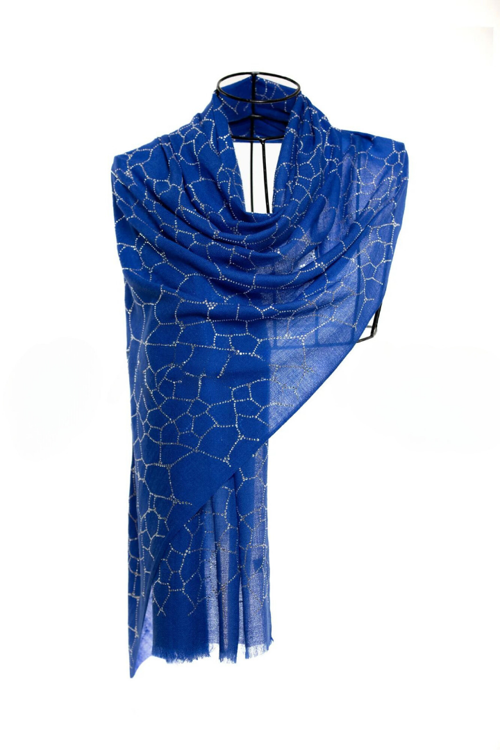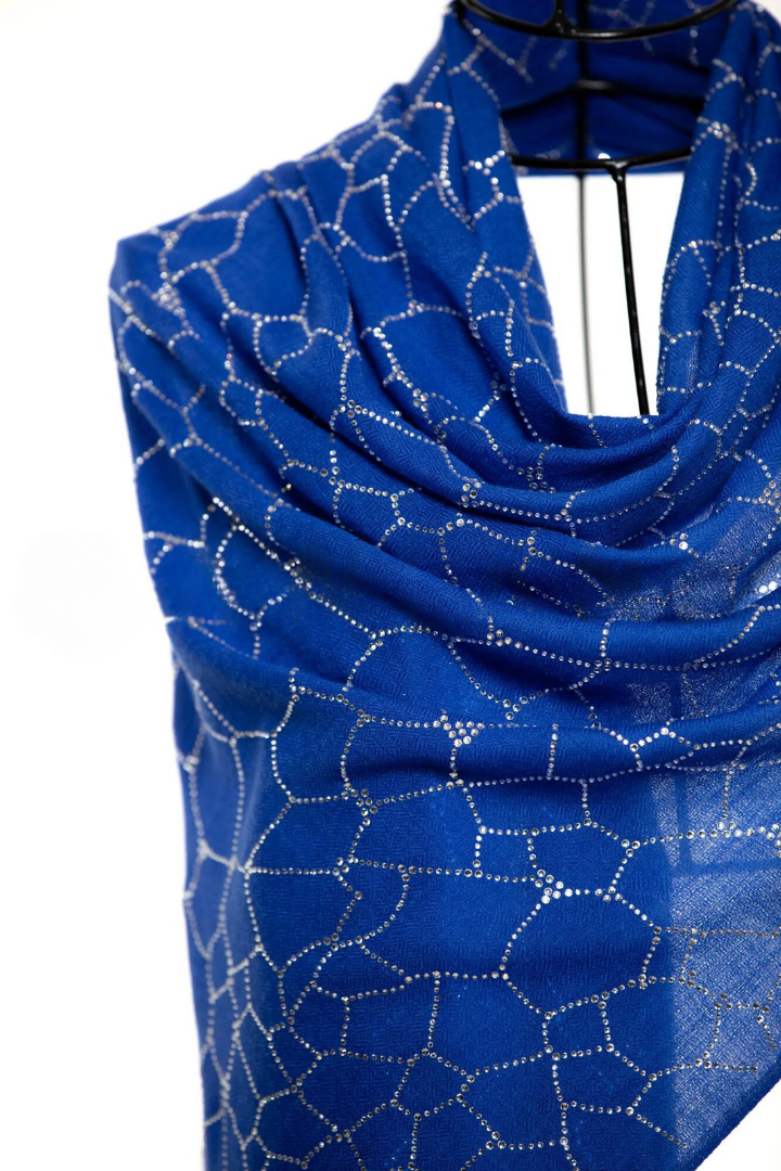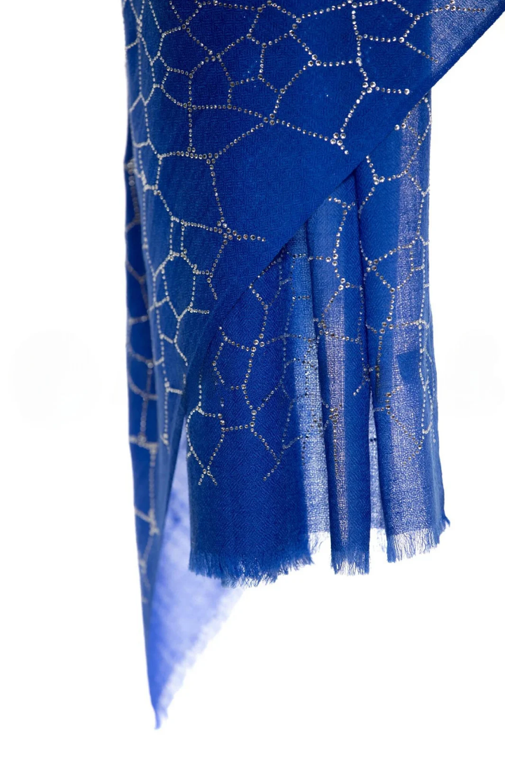 Bee Hive Crystal Silk & Cashmere Shawls with Swarovski - Electric Blue
