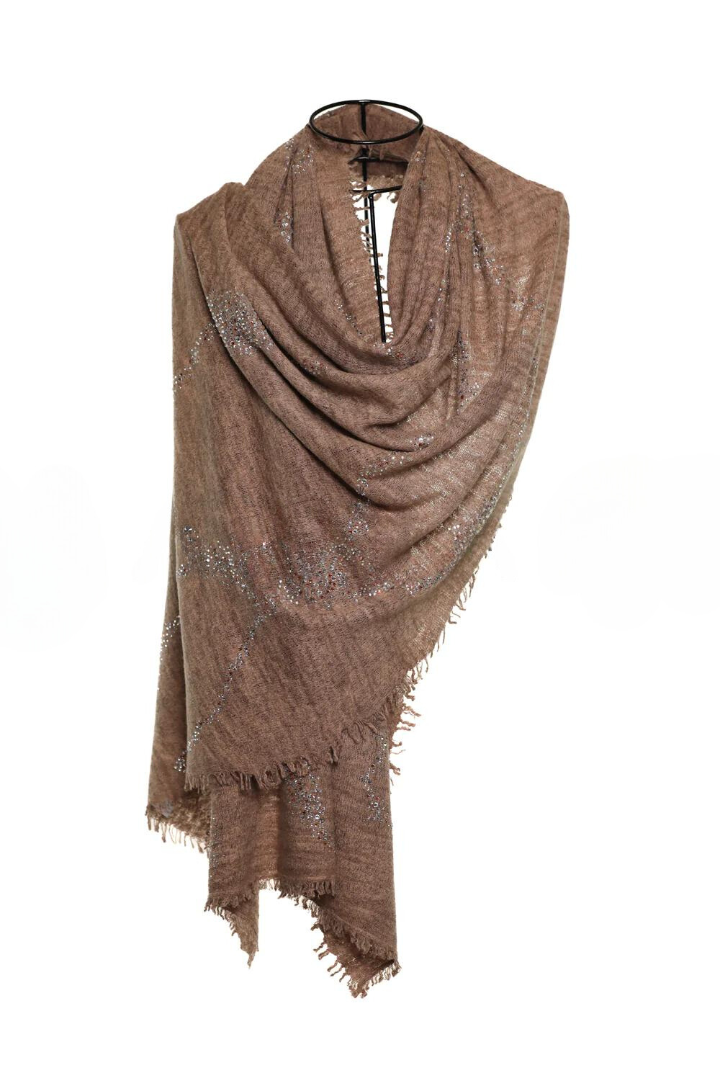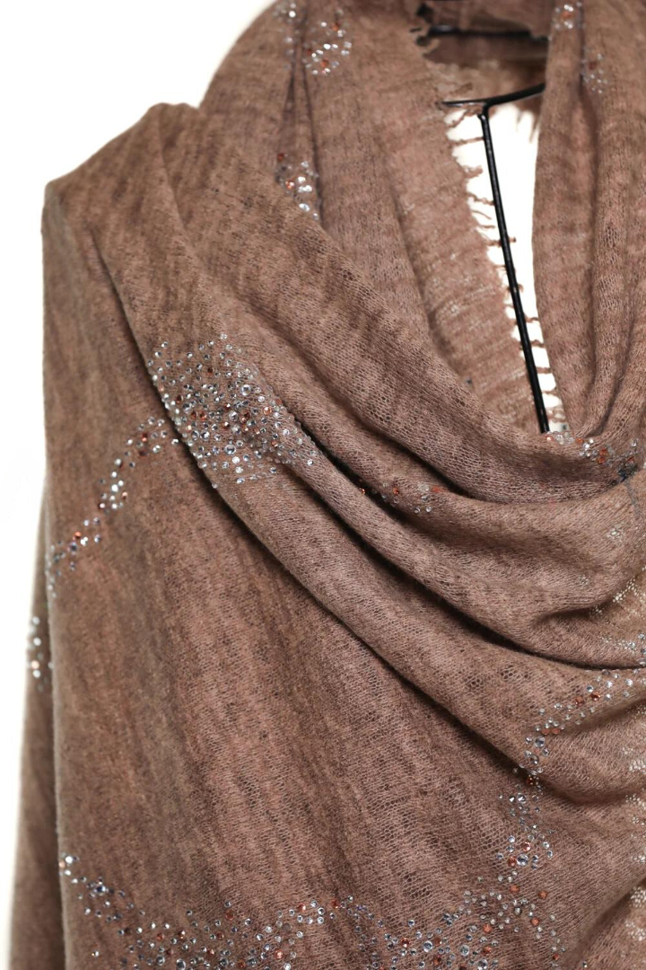 The Earth Cashmere Silk Crystal shawl, a warm and heavy-duty accessory that exudes strength and beauty. The high-quality blend of cashmere and silk provides a luxurious feel, while the stunning crystals add a touch of glamour and sophistication. This shawl is a true statement piece that is perfect for any occasion. Stay cozy and stylish with this must-have accessory.