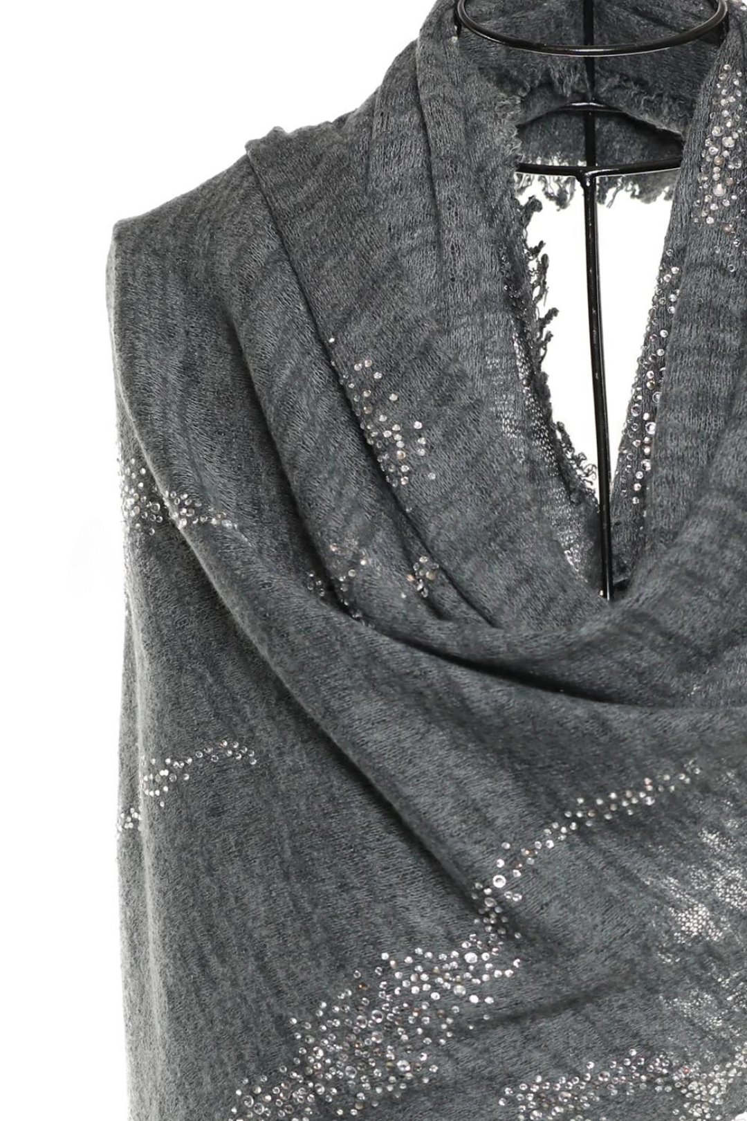 Dry clean: It is recommended to dry clean this shawl to ensure the crystals remain intact and the delicate fibers are not damaged.