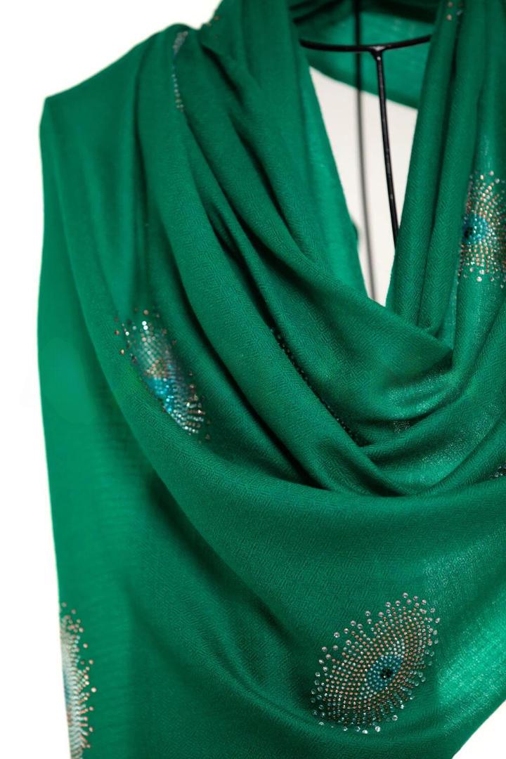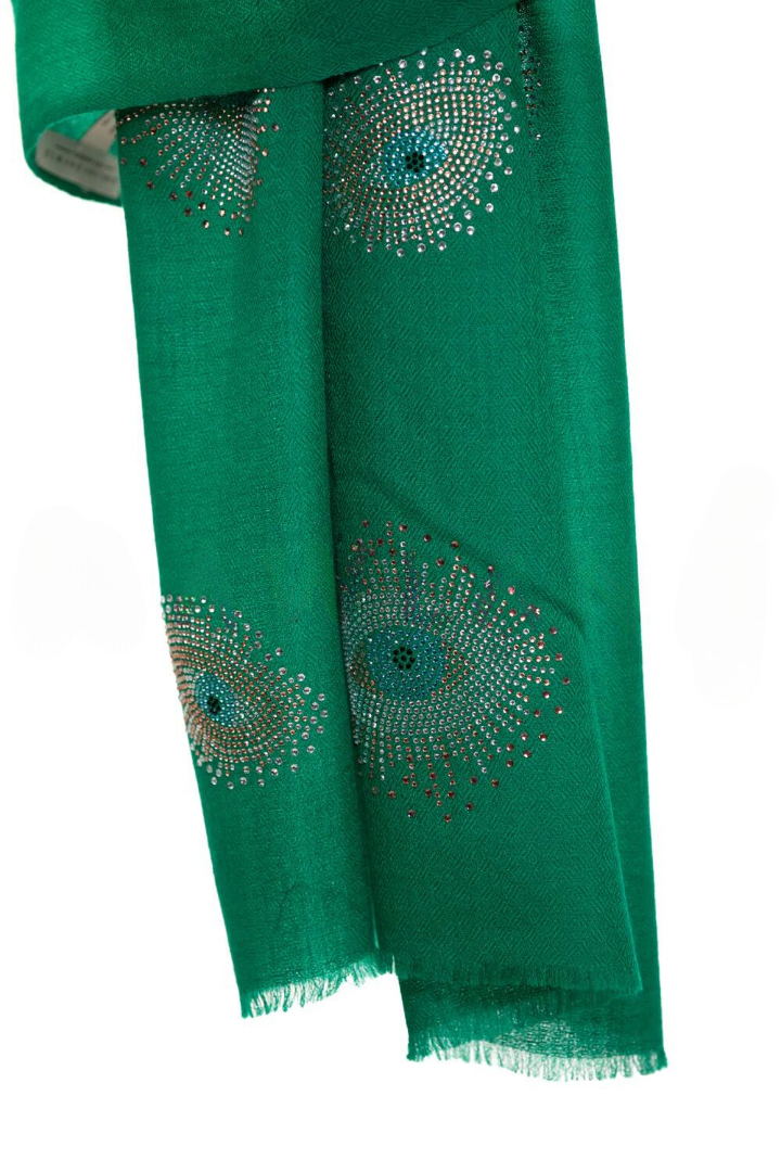 Eye Crystal Silk & Cashmere Shawls with Swarovski - Green