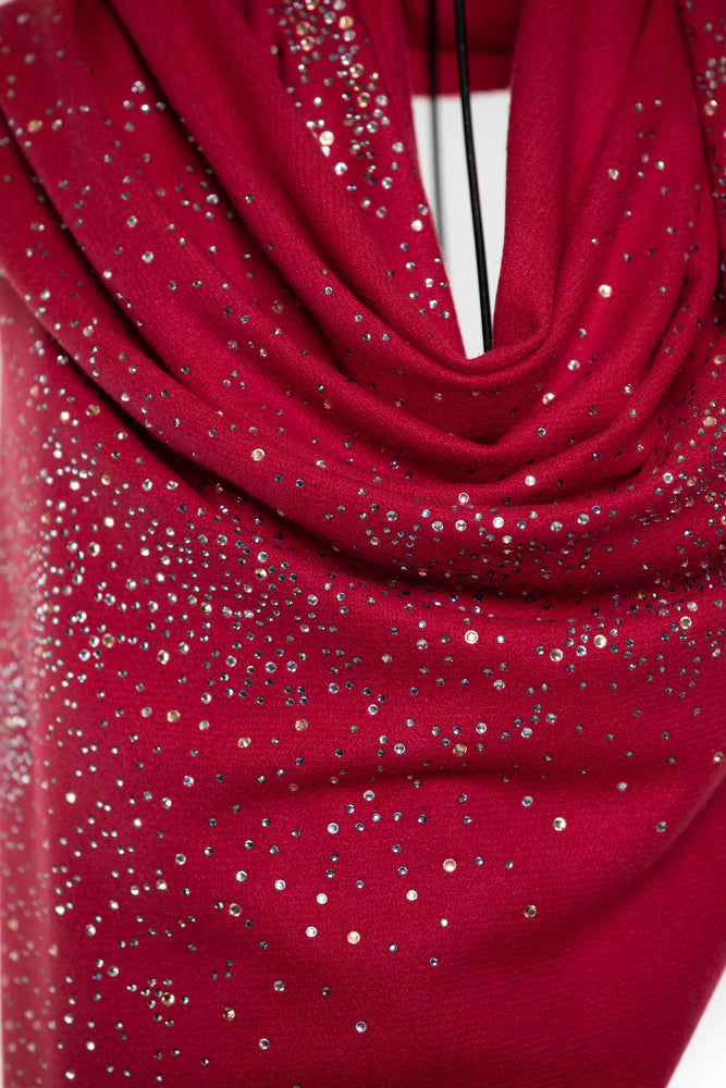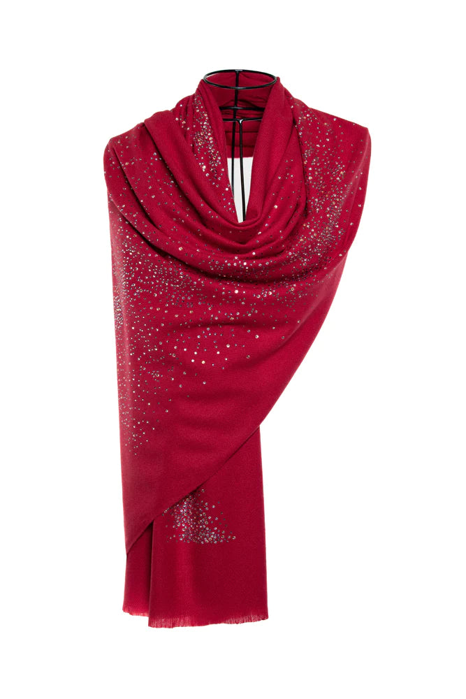 Sky Crystal Modal & Cashmere Shawls with Swarovski - Red