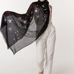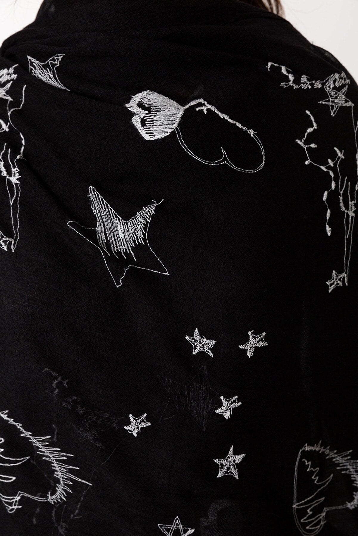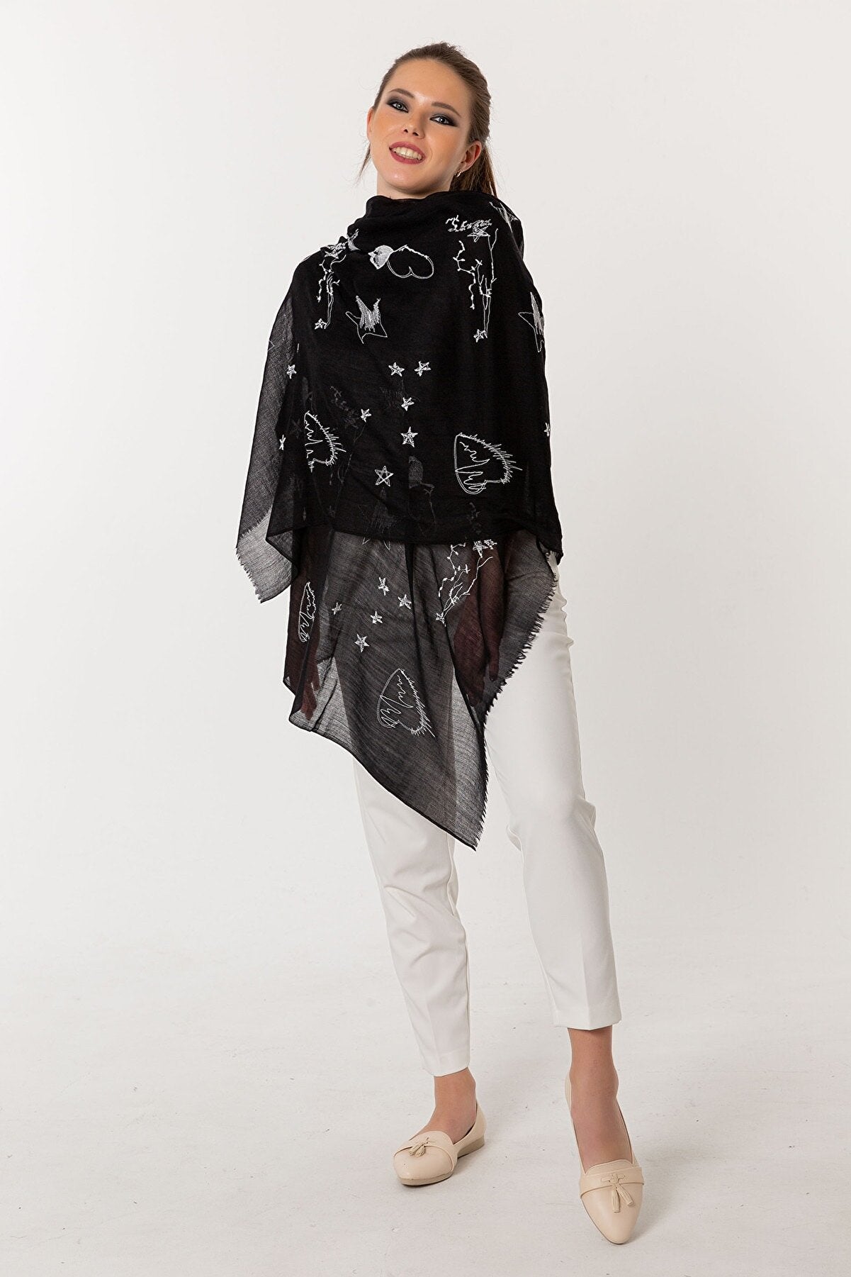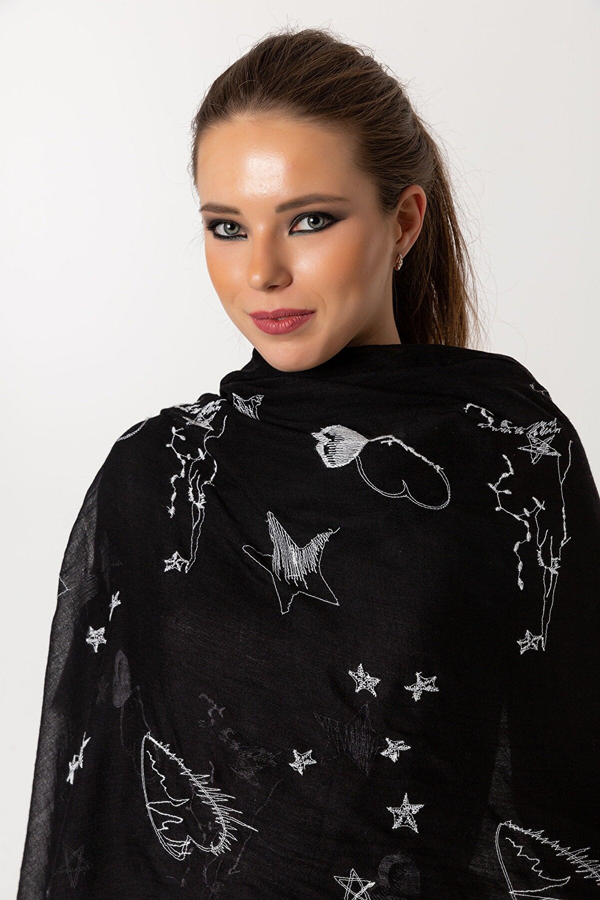 100% Cashmere shawl with small stars and heart pattern delicately embroidered. Very Lightweight and soft. If you're a cashmere lover, this scarf is for you.