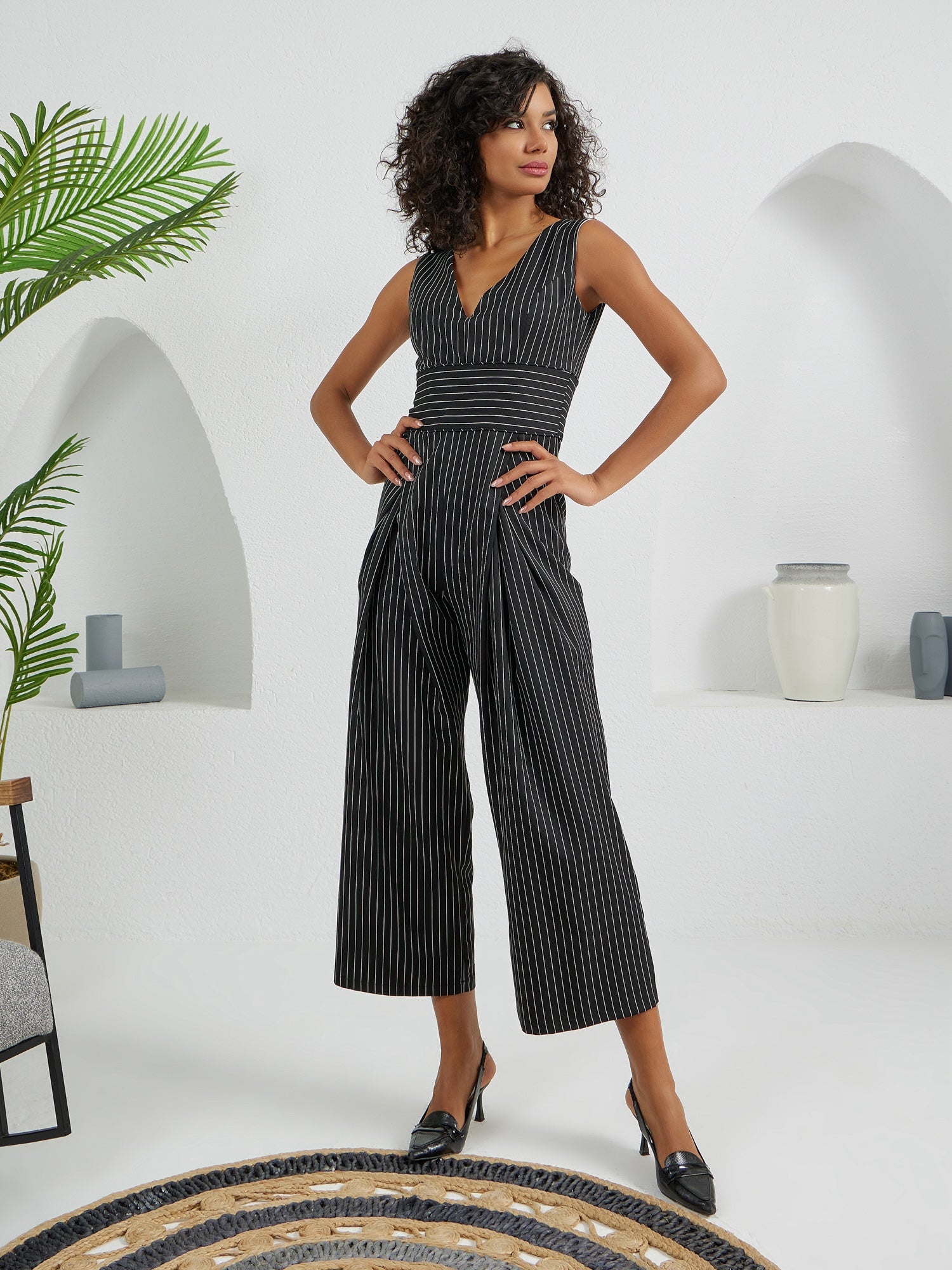 The Arrow Jumpsuit - Black & White Stripes
