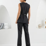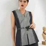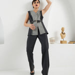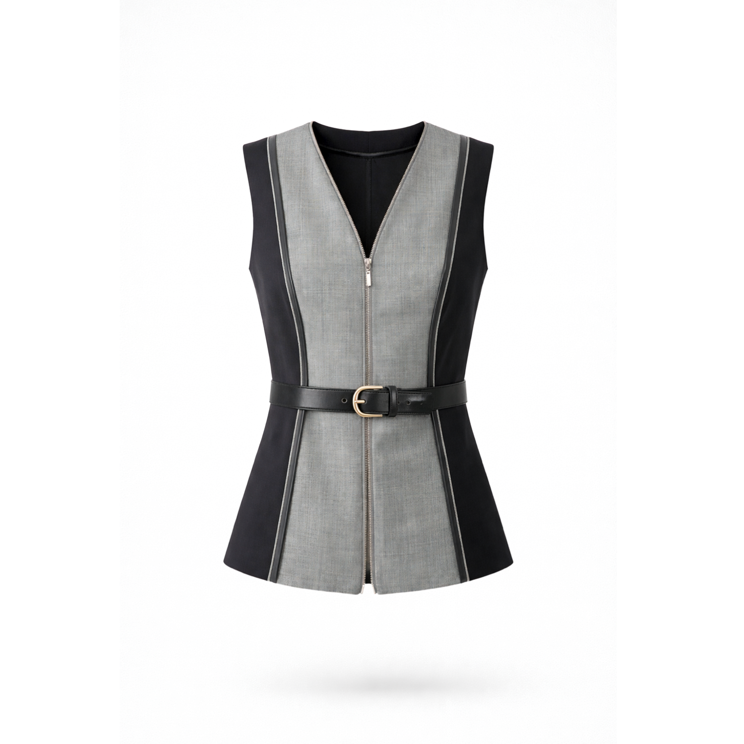 Defined by a structured cut, the Armour Vest features a leather waist belt that cinches the body with controlled elegance, while a rigid metal zipper introduces a sharp, architectural contrast. Every detail is purposeful—balancing functionality with elevated design for a confident, empowered look.