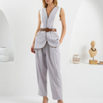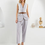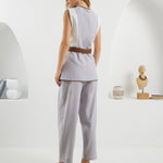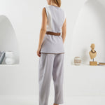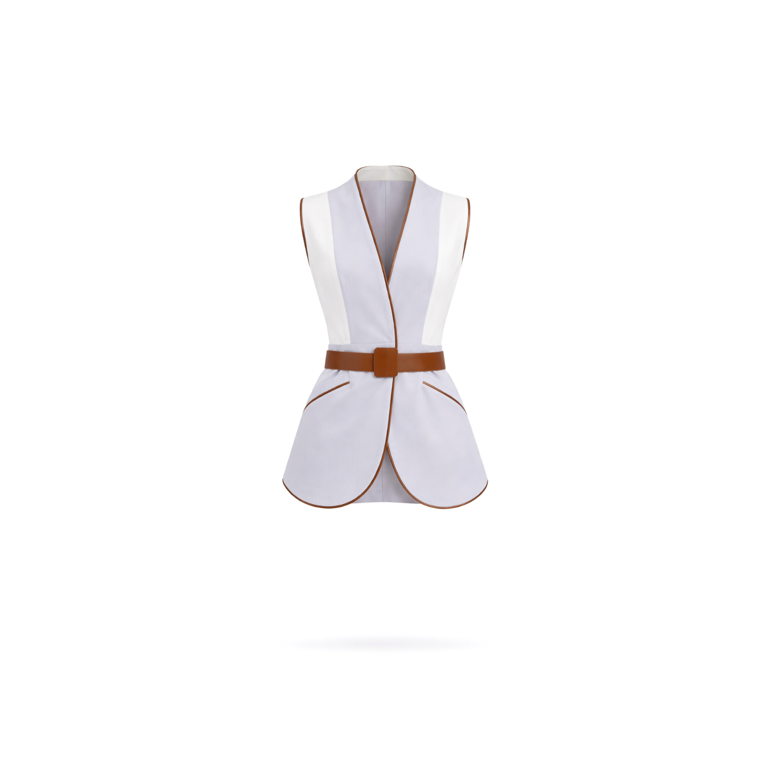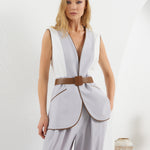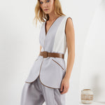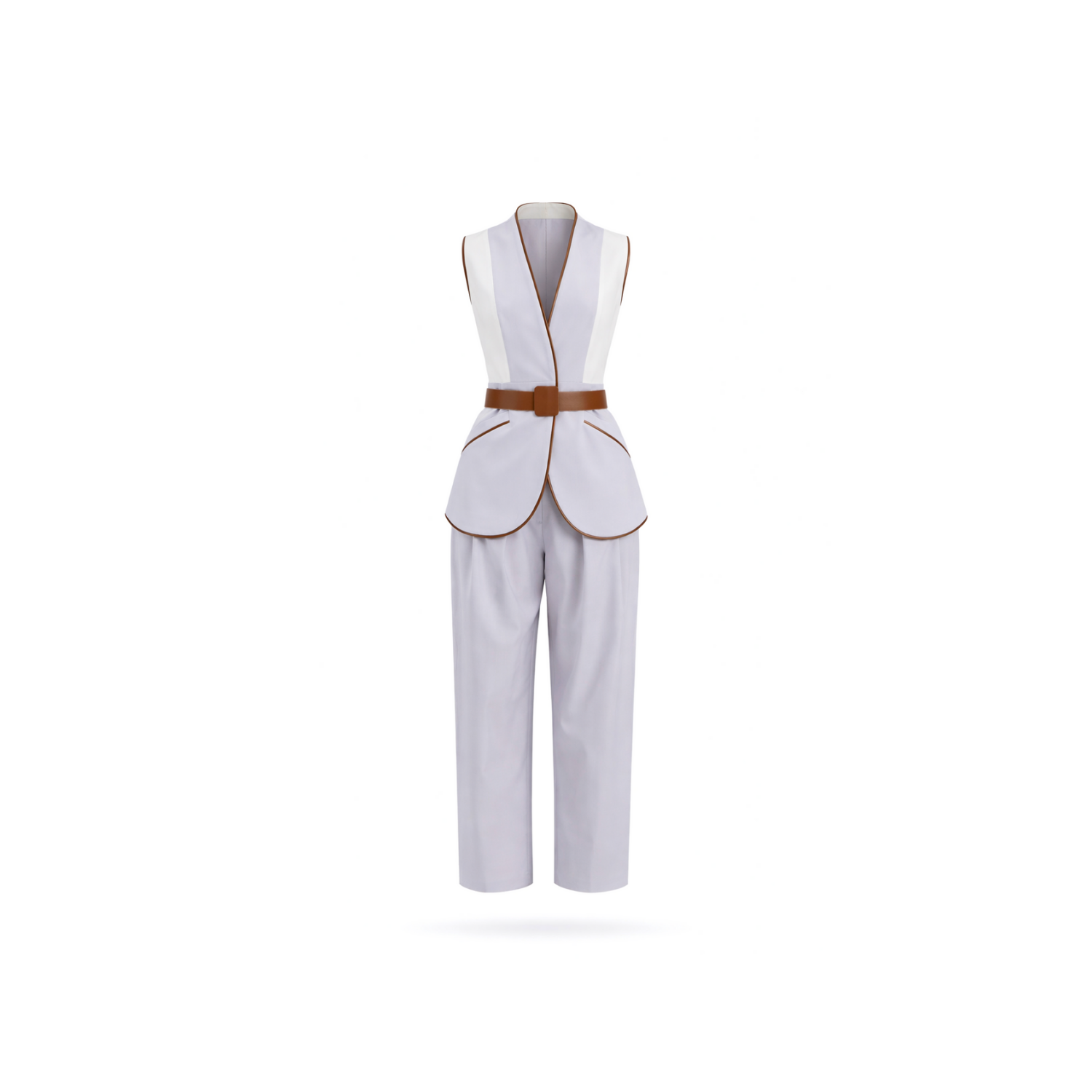 The Edges Belted Vest – Light Gray & White is a refined long-line vest designed to move effortlessly between a jacket and a standalone statement piece. Defined by clean architectural lines and a sculpted silhouette, the vest introduces quiet strength through precision tailoring and controlled structure.