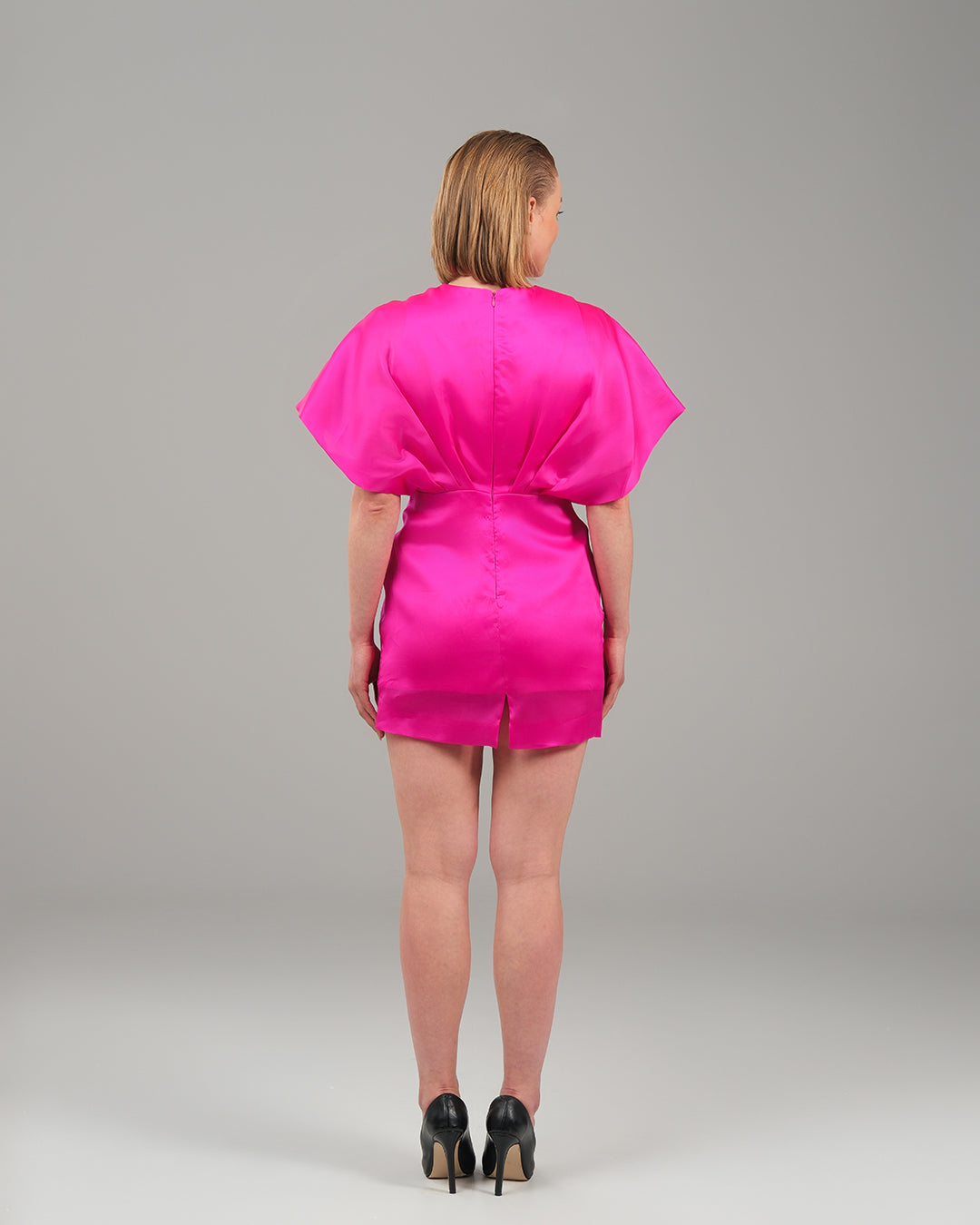 Daring yet refined, the Elektra Satin Dress channels pure magnetism in a bold silhouette. Crafted from fluid satin silk, it radiates with a lustrous sheen that catches every flicker of light. The wide sleeves evoke a sense of drama and ease, while the wrap-front bodice sculpts and flatters with graceful precision. Designed to move effortlessly between moments, this mini dress is made for the modern muse—bold, feminine, and unapologetically luminous.