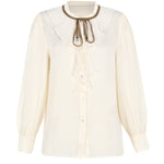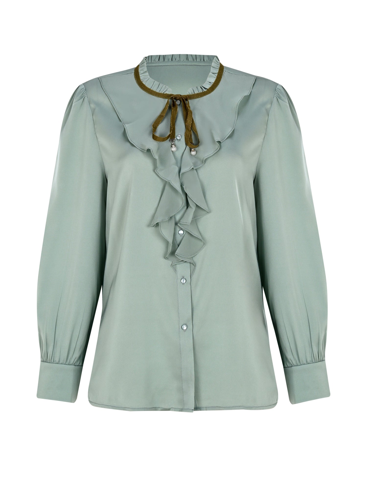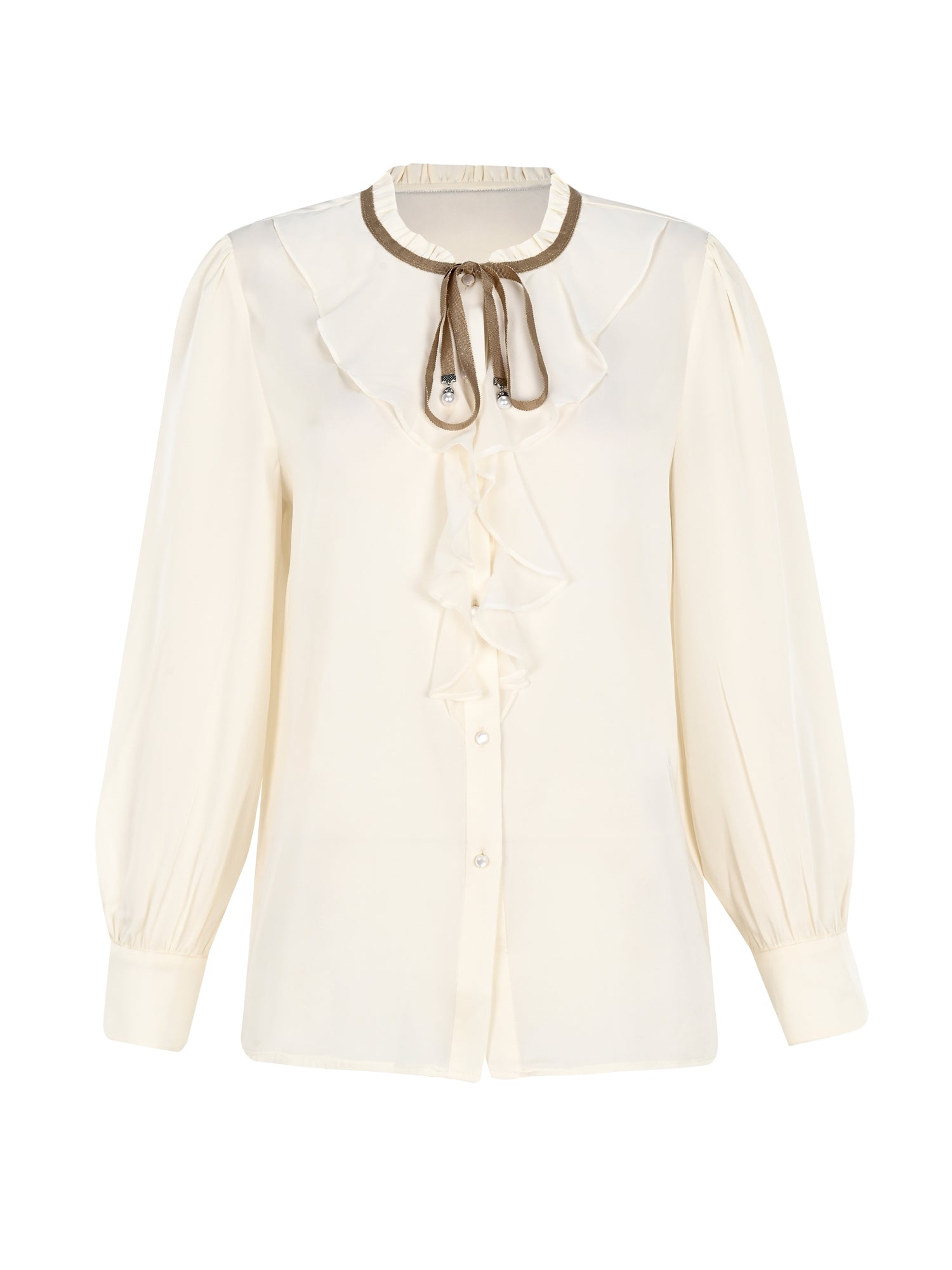Our 100% Mulberry Silk shirts to complement any outfit. Comfortable , breathable and with a flattering cut. With a silk knot and silk ruffle for a playful yet elegant addition